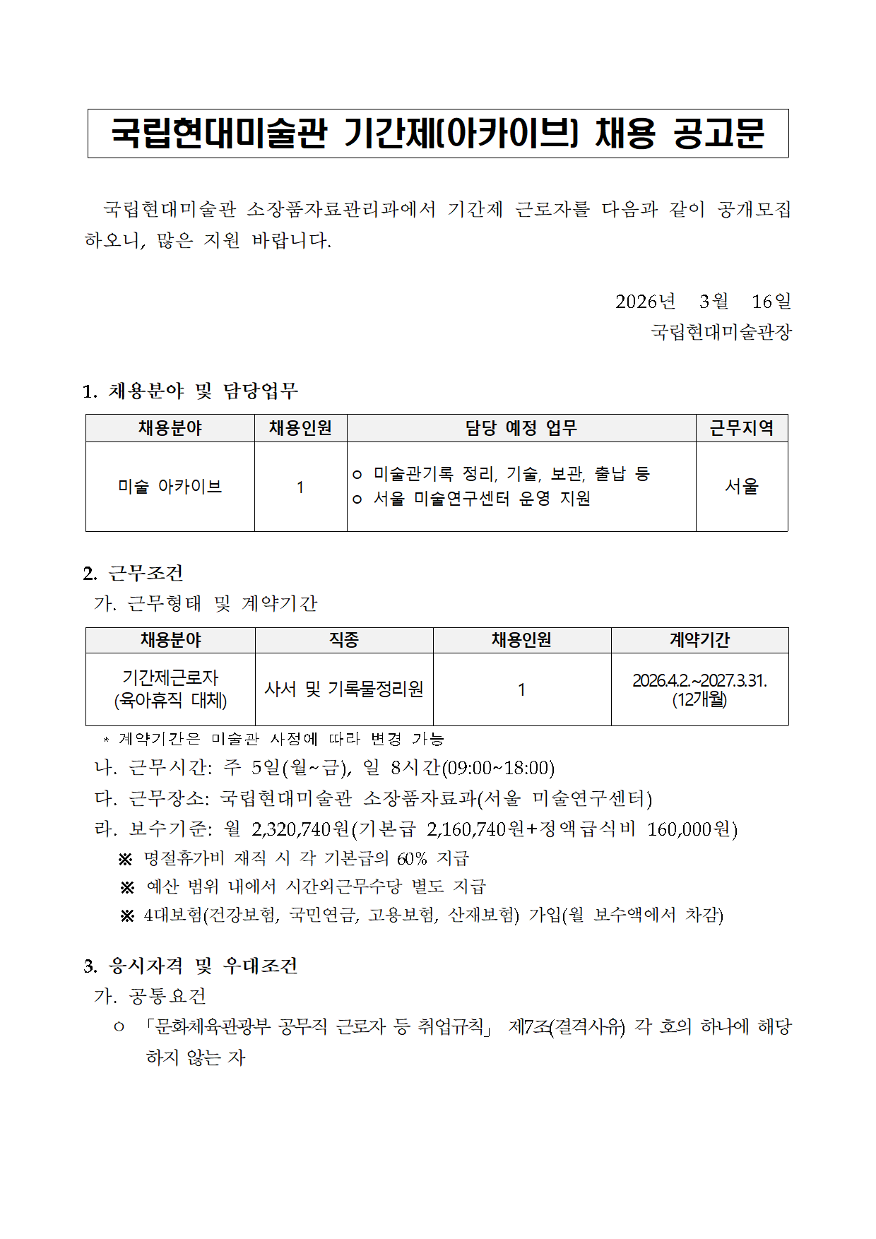 ±¹¸³Çö´ë¹Ì¼ú°ü ¼ÒÀåǰÀÚ·á°ú ±â°£Á¦±Ù·ÎÀÚ(¾ÆÄ«À̺ê) ä¿ë°ø°í
