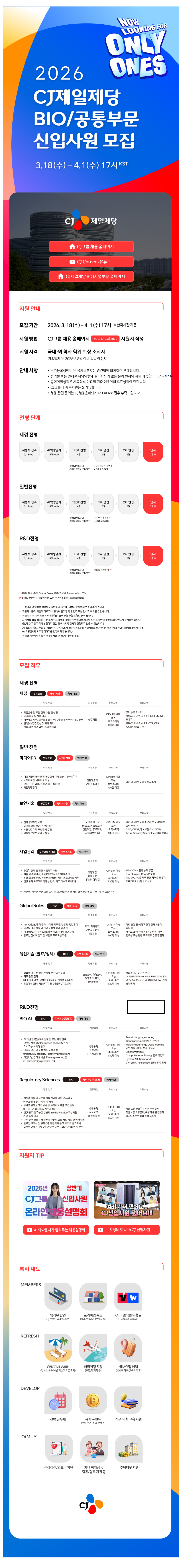 2026³â »ó¹Ý±â CJÁ¦ÀÏÁ¦´ç(BIO/°øÅëºÎ¹®) ½ÅÀÔ»ç¿ø ¸ðÁý