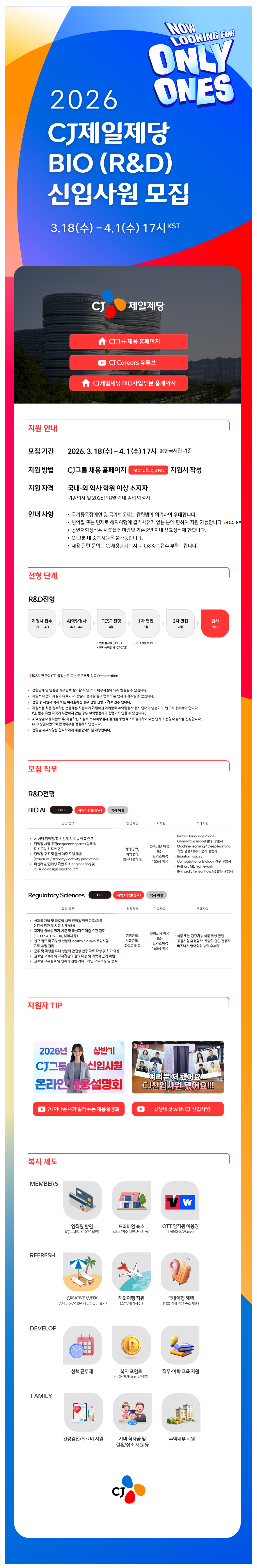2026³â »ó¹Ý±â CJÁ¦ÀÏÁ¦´ç(BIO»ç¾÷ºÎ¹®) R&D ½ÅÀÔ»ç¿ø ¸ðÁý