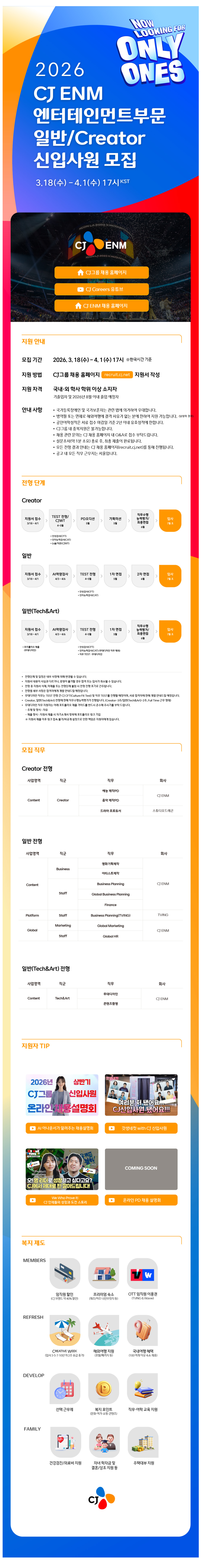 2026³â »ó¹Ý±â CJ ENM ¿£ÅÍÅ×ÀÎ¸ÕÆ®ºÎ¹® ÀϹÝ/CREATOR ½ÅÀÔ»ç¿ø ¸ðÁý
