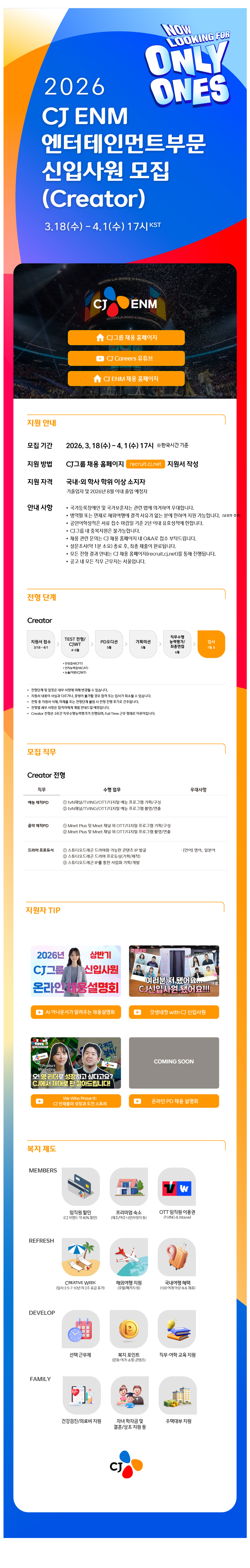 2026³â »ó¹Ý±â CJ ENM ¿£ÅÍÅ×ÀÎ¸ÕÆ®ºÎ¹® ½ÅÀÔ(CREATOR) ¸ðÁý