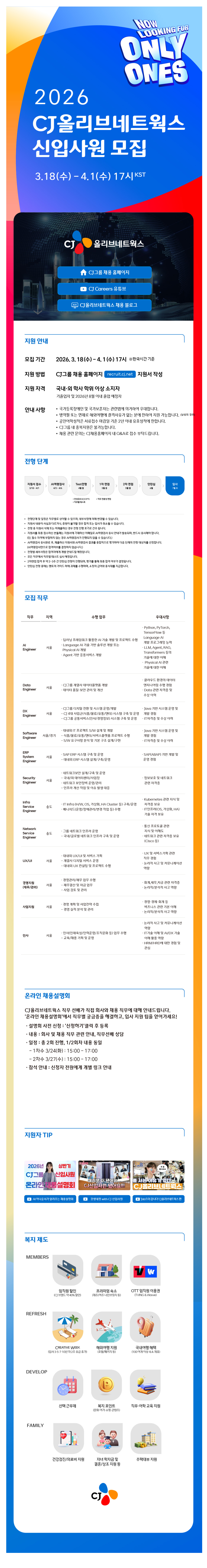 2026³â »ó¹Ý±â CJ¿Ã¸®ºê³×Æ®¿÷½º ½ÅÀÔ»ç¿ø ¸ðÁý