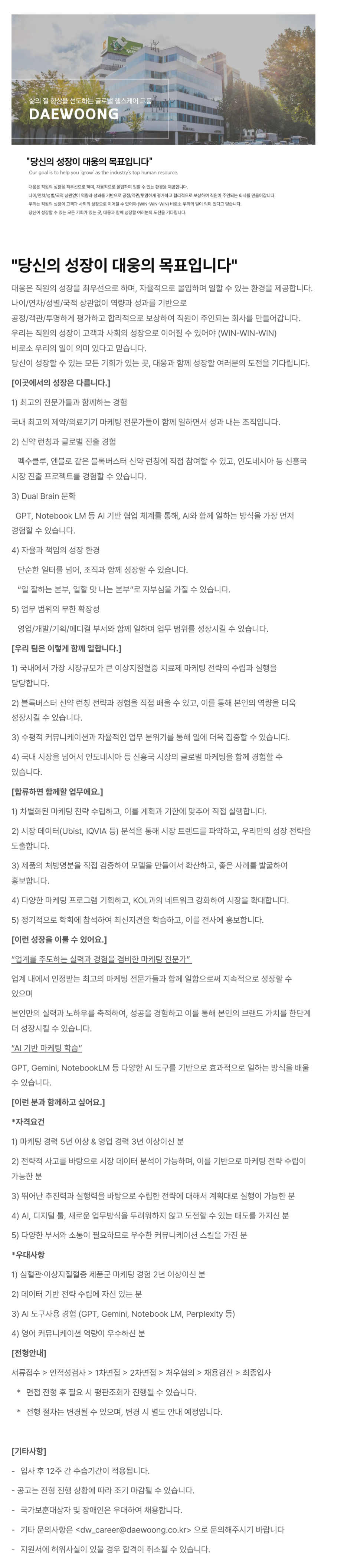 [ÇÕ·ùÇϸé ÇÔ²²ÇÒ ¾÷¹«¿¡¿ä.] 1) Â÷º°È­µÈ ¸¶ÄÉÆÃ Àü·« ¼ö¸³Çϰí, À̸¦ °èȹ°ú ±âÇÑ¿¡ ¸ÂÃß¾î Á÷Á¢ ½ÇÇàÇÕ´Ï´Ù. 2) ½ÃÀå µ¥ÀÌÅÍ(Ubist, IQVIA µî) ºÐ¼®À» ÅëÇØ ½ÃÀå Æ®·»µå¸¦ ÆÄ¾ÇÇϰí, ¿ì¸®¸¸ÀÇ ¼ºÀå Àü·«À» µµÃâÇÕ´Ï´Ù. 3) Á¦Ç°ÀÇ Ã³¹æ¸íºÐÀ» Á÷Á¢ °ËÁõÇÏ¿© ¸ðµ¨À» ¸¸µé¾î¼­ È®»êÇϰí, ÁÁÀº »ç·Ê¸¦ ¹ß±¼ÇÏ¿© È«º¸ÇÕ´Ï´Ù. 4) ´Ù¾çÇÑ ¸¶ÄÉÆÃ ÇÁ·Î±×·¥ ±âȹÇϰí, KOL°úÀÇ ³×Æ®¿öÅ© °­È­ÇÏ¿© ½ÃÀåÀ» È®´ëÇÕ´Ï´Ù. 5) Á¤±âÀûÀ¸·Î ÇÐȸ¿¡ Âü¼®ÇÏ¿© ÃÖ½ÅÁö°ßÀ» ÇнÀÇϰí, À̸¦ Àü»ç¿¡ È«º¸ÇÕ´Ï´Ù.