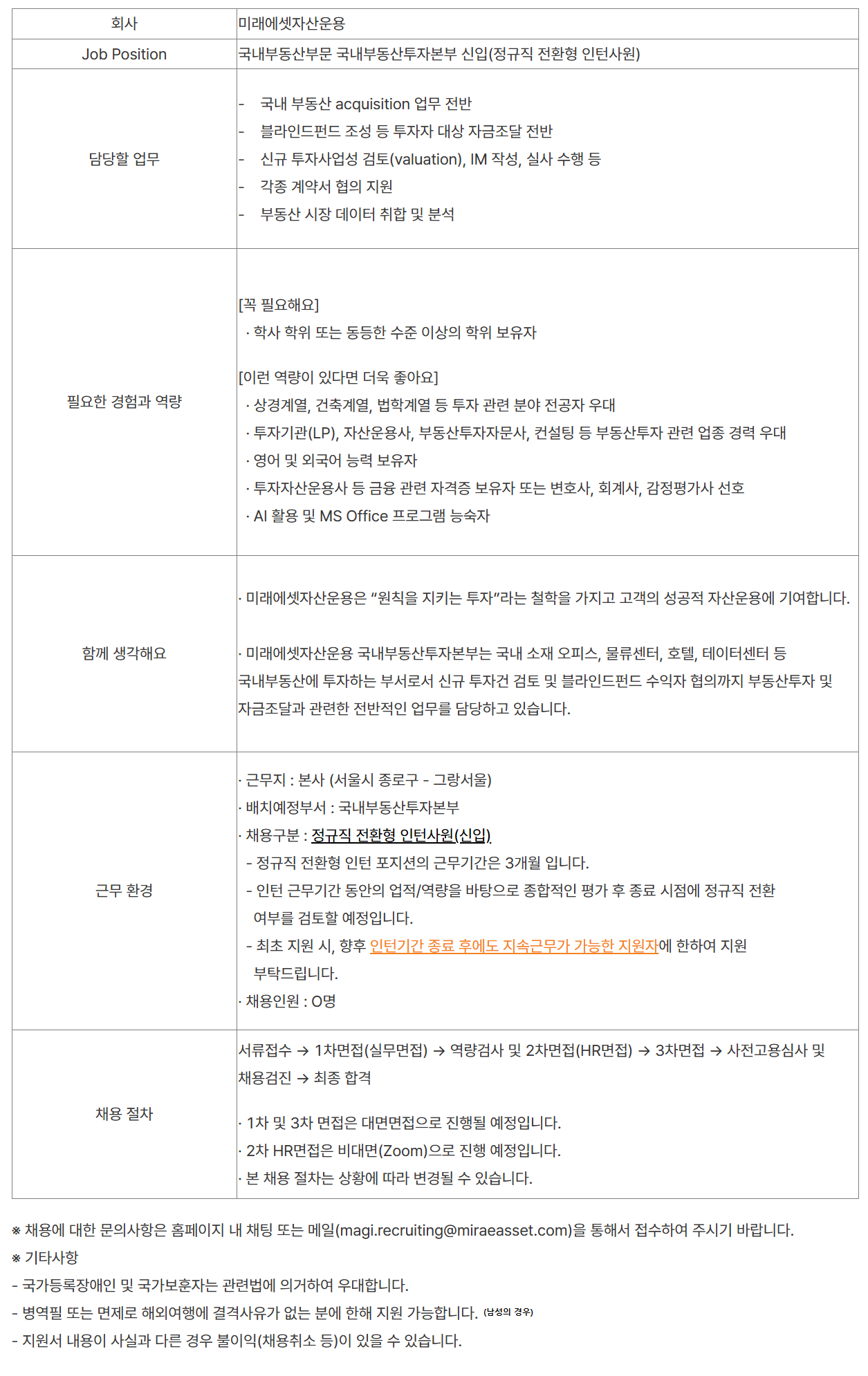Job Position ±¹³»ºÎµ¿»êºÎ¹® ±¹³»ºÎµ¿»êÅõÀÚº»ºÎ ½ÅÀÔ(Á¤±ÔÁ÷ ÀüȯÇü ÀÎÅÏ»ç¿ø)