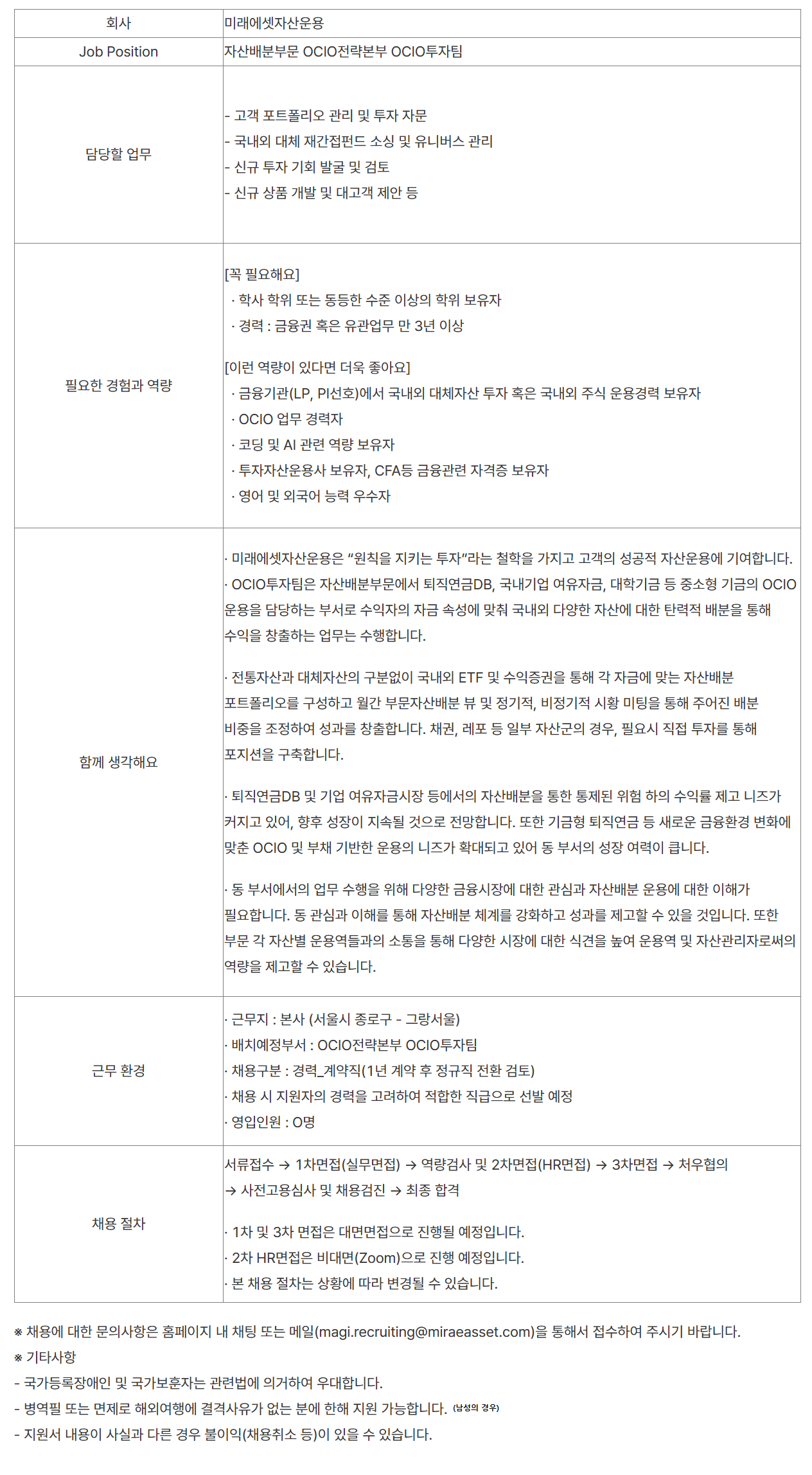 Job Position ÀÚ»ê¹èºÐºÎ¹® OCIOÀü·«º»ºÎ OCIOÅõÀÚÆÀ