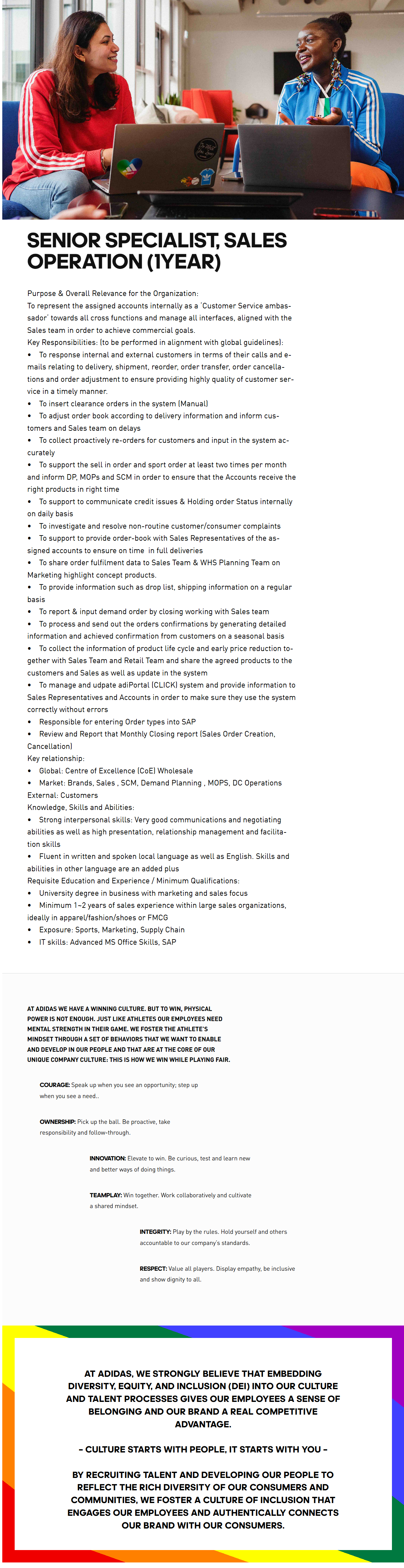 • Minimum 1~2 years of sales experience within large sales organizations, ideally in apparel/fashion/shoes or FMCG