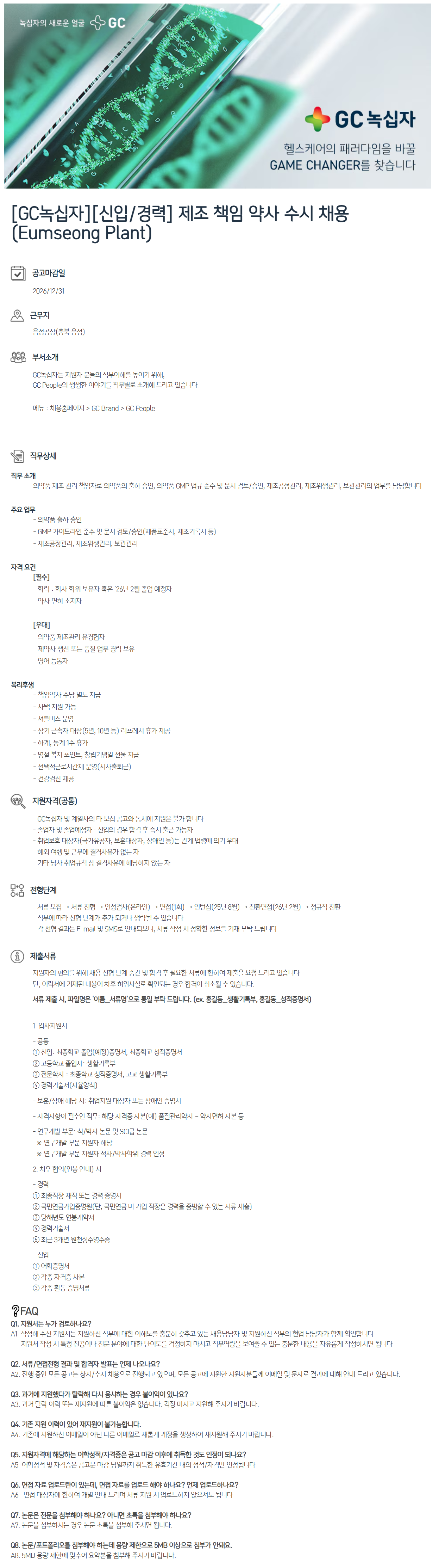 ÀǾàǰ Á¦Á¶ °ü¸® Ã¥ÀÓÀÚ·Î ÀǾàǰÀÇ ÃâÇÏ ½ÂÀÎ, ÀǾàǰ GMP ¹ý±Ô Áؼö ¹× ¹®¼ °ËÅä/½ÂÀÎ, Á¦Á¶°øÁ¤°ü¸®, Á¦Á¶À§»ý°ü¸®, º¸°ü°ü¸®ÀÇ ¾÷¹«¸¦ ´ã´çÇÕ´Ï´Ù.