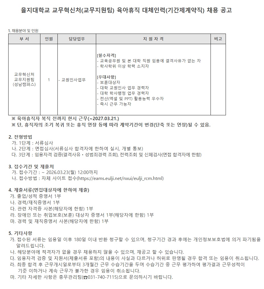 ±³¹«Çõ½Åó(±³¹«Áö¿øÆÀ) À°¾ÆÈÞÁ÷ ´ëüÀη ä¿ë