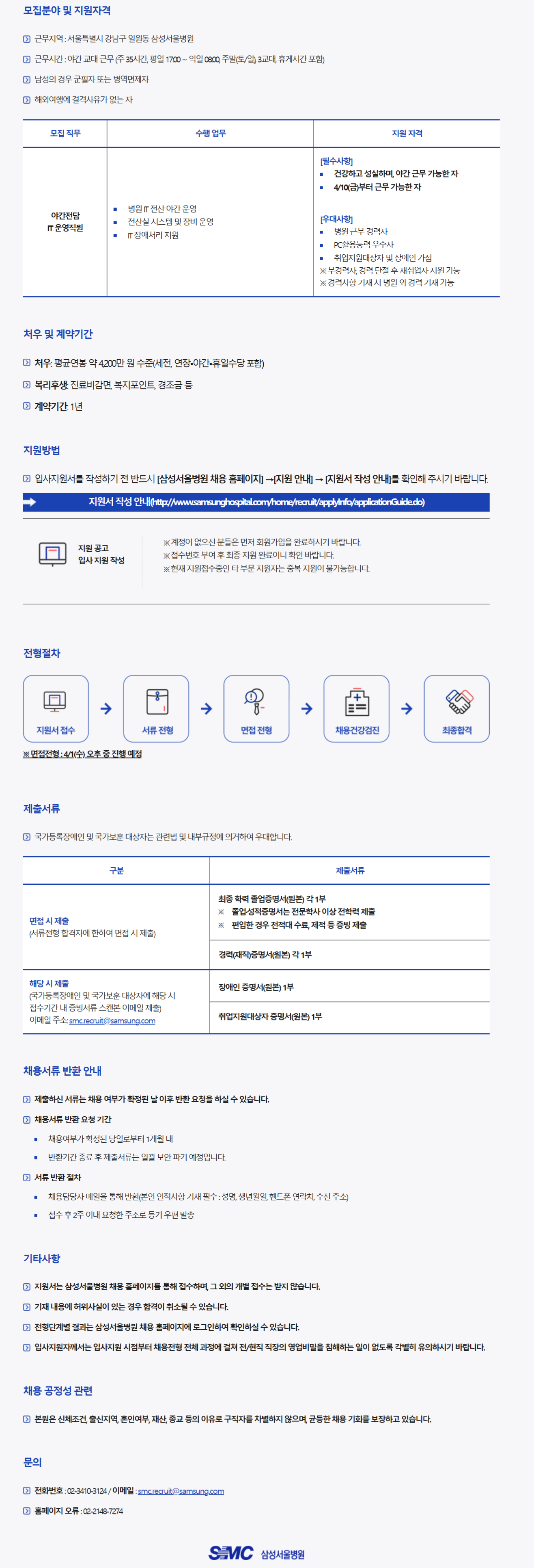 ¸ðÁý Á÷¹« ¼öÇà ¾÷¹« Áö¿ø ÀÚ°Ý ¾ß°£Àü´ã IT ¿î¿µÁ÷¿ø º´¿ø IT Àü»ê ¾ß°£ ¿î¿µ Àü»ê½Ç ½Ã½ºÅÛ ¹× Àåºñ ¿î¿µ IT Àå¾Öó¸® Áö¿ø [Çʼö»çÇ×] °Ç°­ÇÏ°í ¼º½ÇÇϸç, ¾ß°£ ±Ù¹« °¡´ÉÇÑ ÀÚ 4/10(±Ý)ºÎÅÍ ±Ù¹« °¡´ÉÇÑ ÀÚ [¿ì´ë»çÇ×] º´¿ø ±Ù¹« °æ·ÂÀÚ PCȰ¿ë´É·Â ¿ì¼öÀÚ Ãë¾÷Áö¿ø´ë»óÀÚ ¹× Àå¾ÖÀÎ °¡Á¡ ¡Ø ¹«°æ·ÂÀÚ, °æ·Â ´ÜÀý ÈÄ ÀçÃë¾÷ÀÚ Áö¿ø °¡´É ¡Ø °æ·Â»çÇ× ±âÀç ½Ã º´¿ø ¿Ü °æ·Â ±âÀç °¡´É