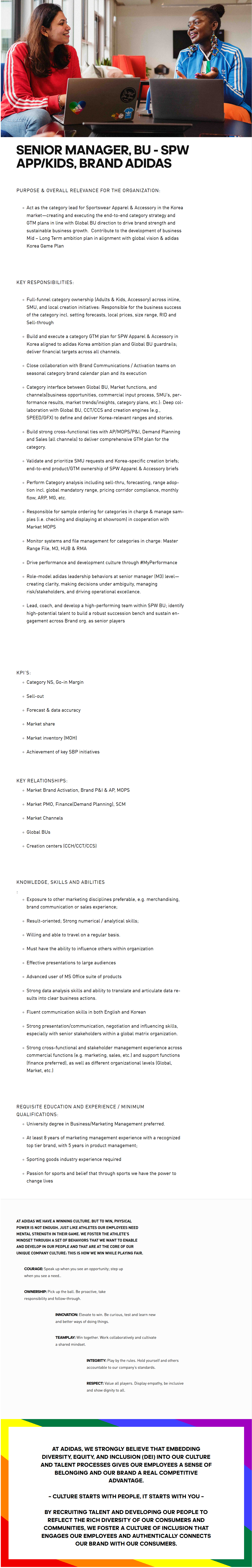 Senior Manager, BU - SPW APP/Kids, Brand adidas