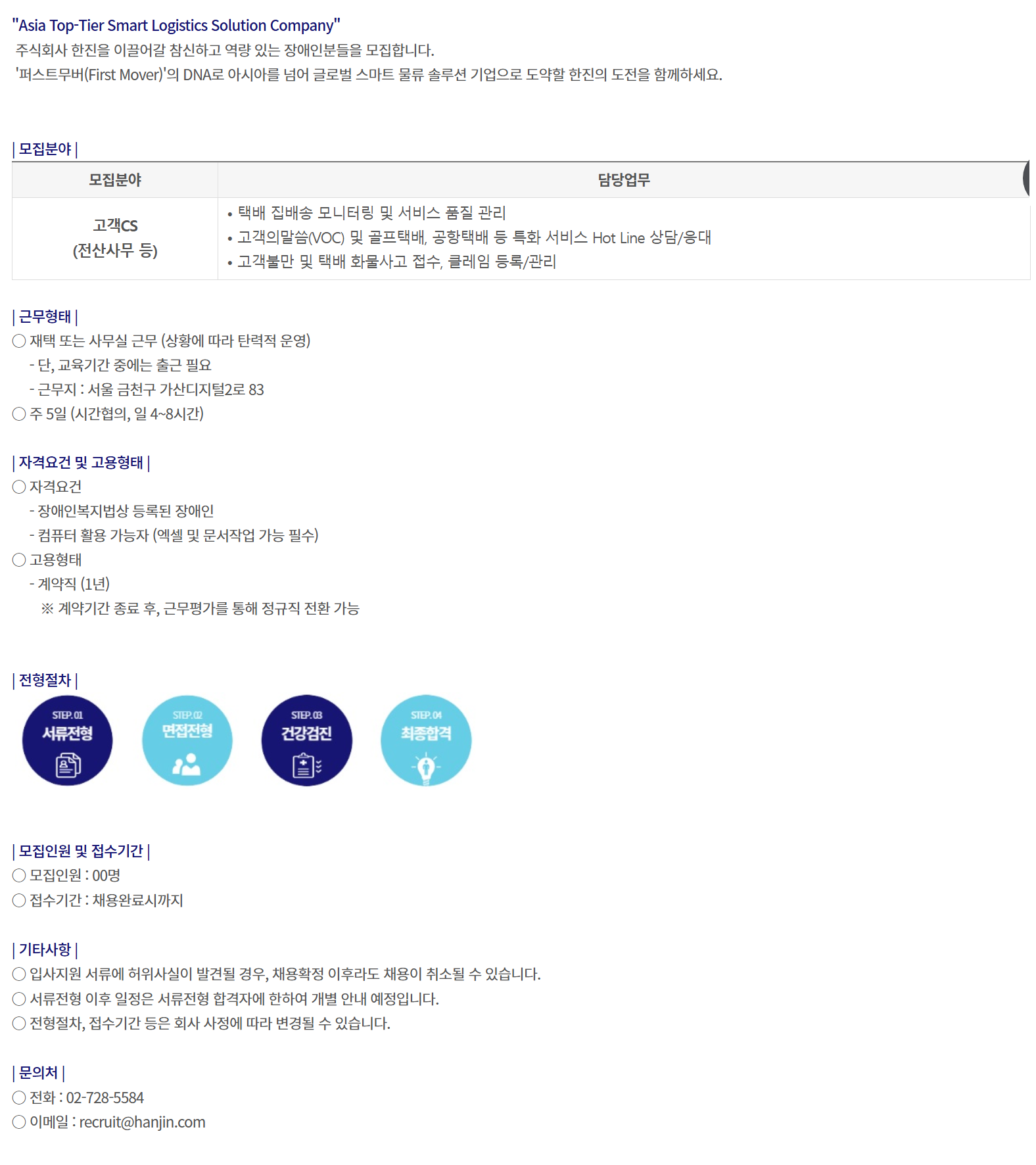 ÁÖ½Äȸ»ç ÇÑÁøÀ» À̲ø¾î°¥ Âü½ÅÇÏ°í ¿ª·® ÀÖ´Â Àå¾ÖÀκеéÀ» ¸ðÁýÇÕ´Ï´Ù.