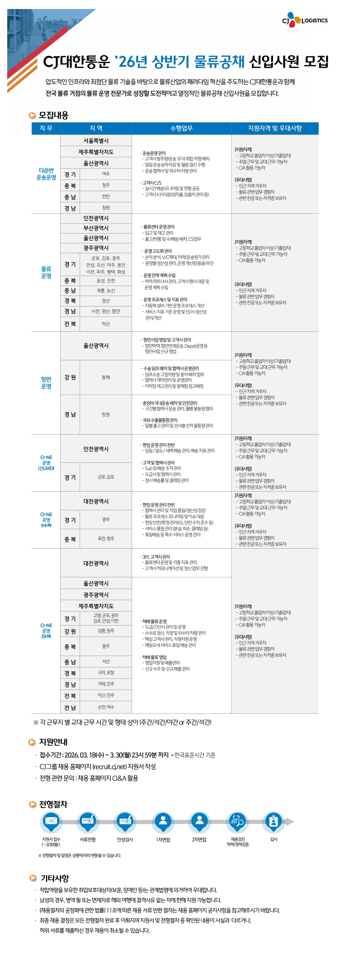 2026³â »ó¹Ý±â CJ´ëÇÑÅë¿î '¹°·ù°øÃ¤' ½ÅÀÔ»ç¿ø ¸ðÁý