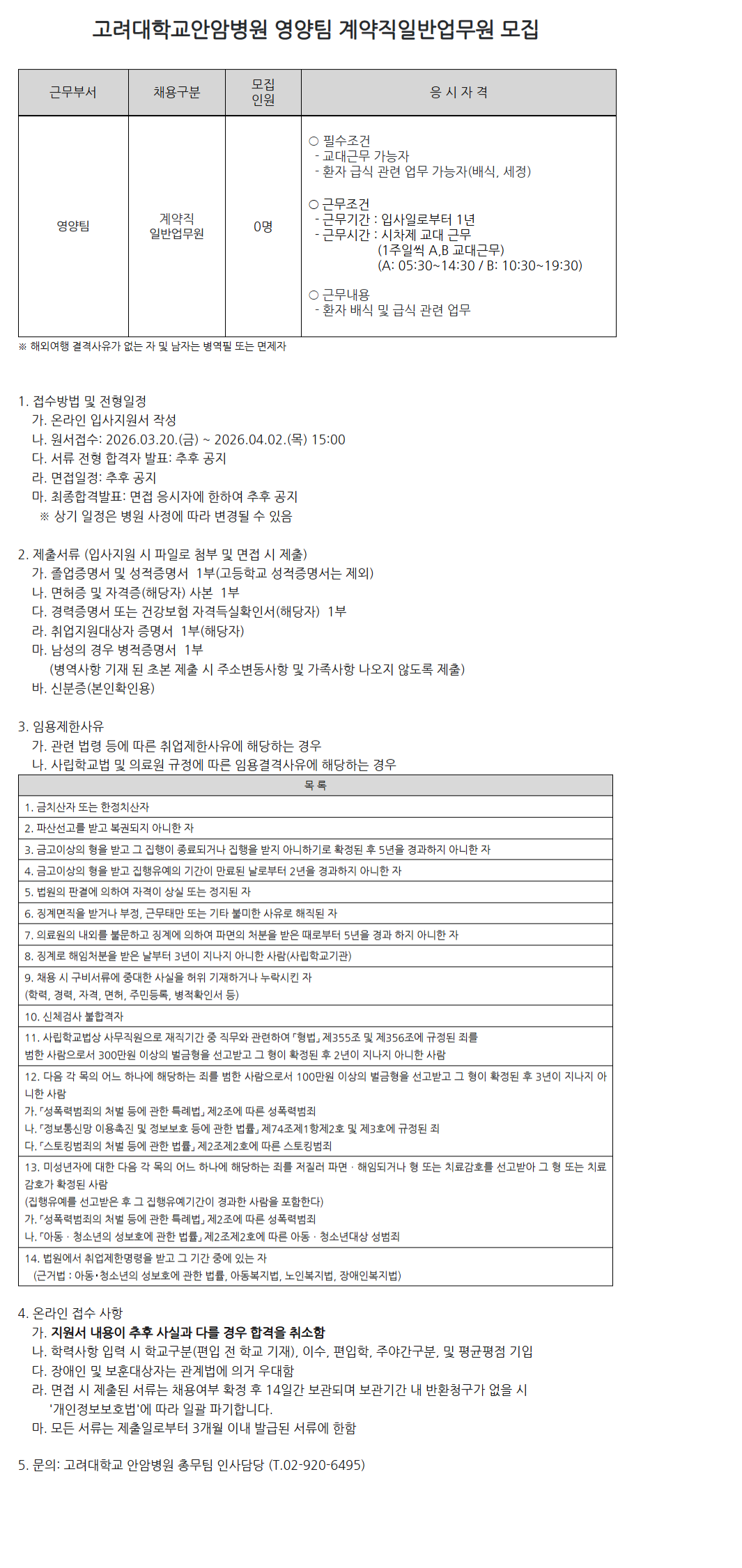 [¾È¾Ïº´¿ø 26-14]¿µ¾çÆÀ °è¾àÁ÷ ÀϹݾ÷¹«¿ø ¸ðÁý