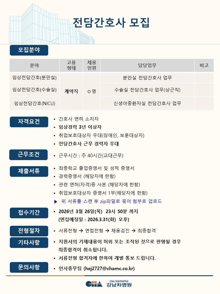 [°³²Â÷º´¿ø] Àü´ã°£È£»ç ¸ðÁý
