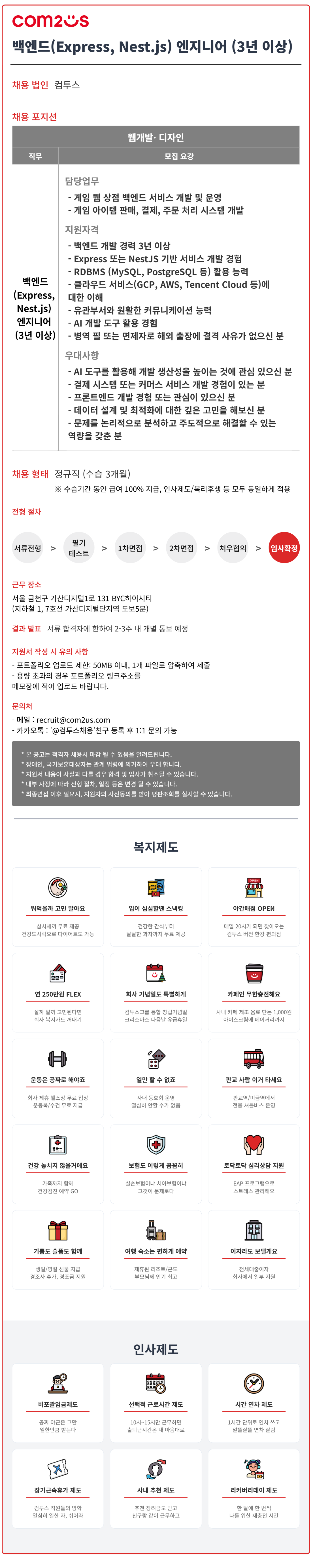 ¹é¿£µå(Express, Nest.js) ¿£Áö´Ï¾î (3³â ÀÌ»ó)