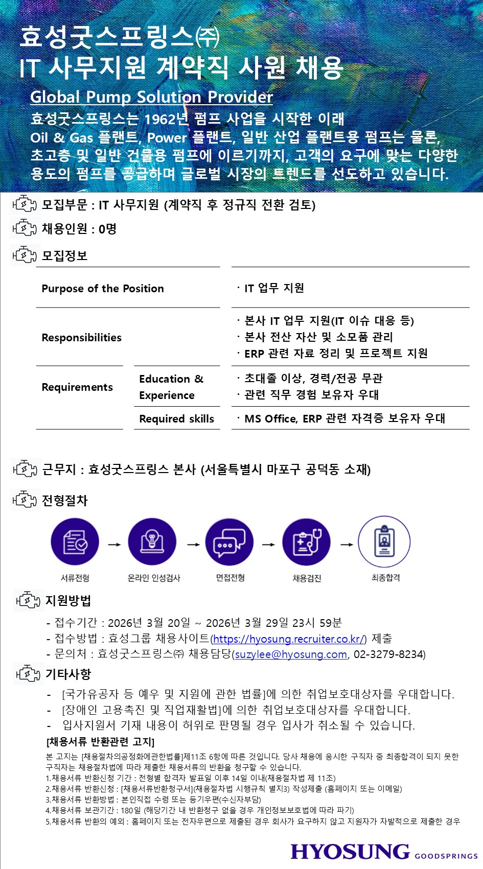 [È¿¼º±Â½ºÇÁ¸µ½º] IT »ç¹«Áö¿ø °è¾àÁ÷ ä¿ë