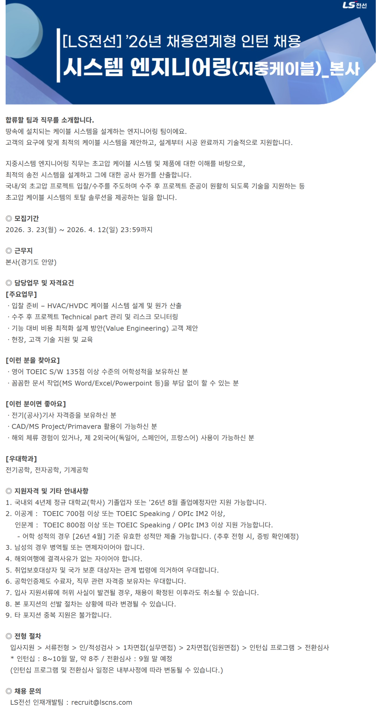[LSÀü¼±] '26³â ä¿ë¿¬°èÇü ÀÎÅÏ Ã¤¿ë - ½Ã½ºÅÛ ¿£Áö´Ï¾î¸µ(ÁöÁßÄÉÀ̺í)