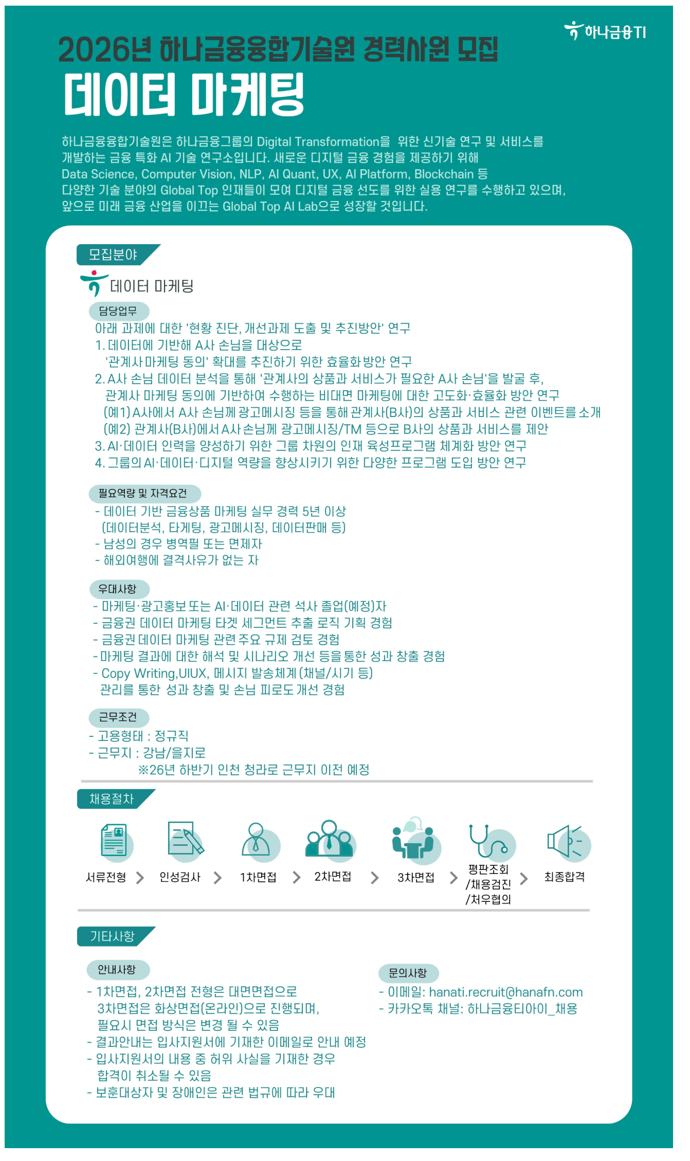 [Çϳª±ÝÀ¶À¶ÇÕ±â¼ú¿ø] µ¥ÀÌÅÍ ¸¶ÄÉÆÃ °æ·Â ¿¬±¸¿ø ¸ðÁý