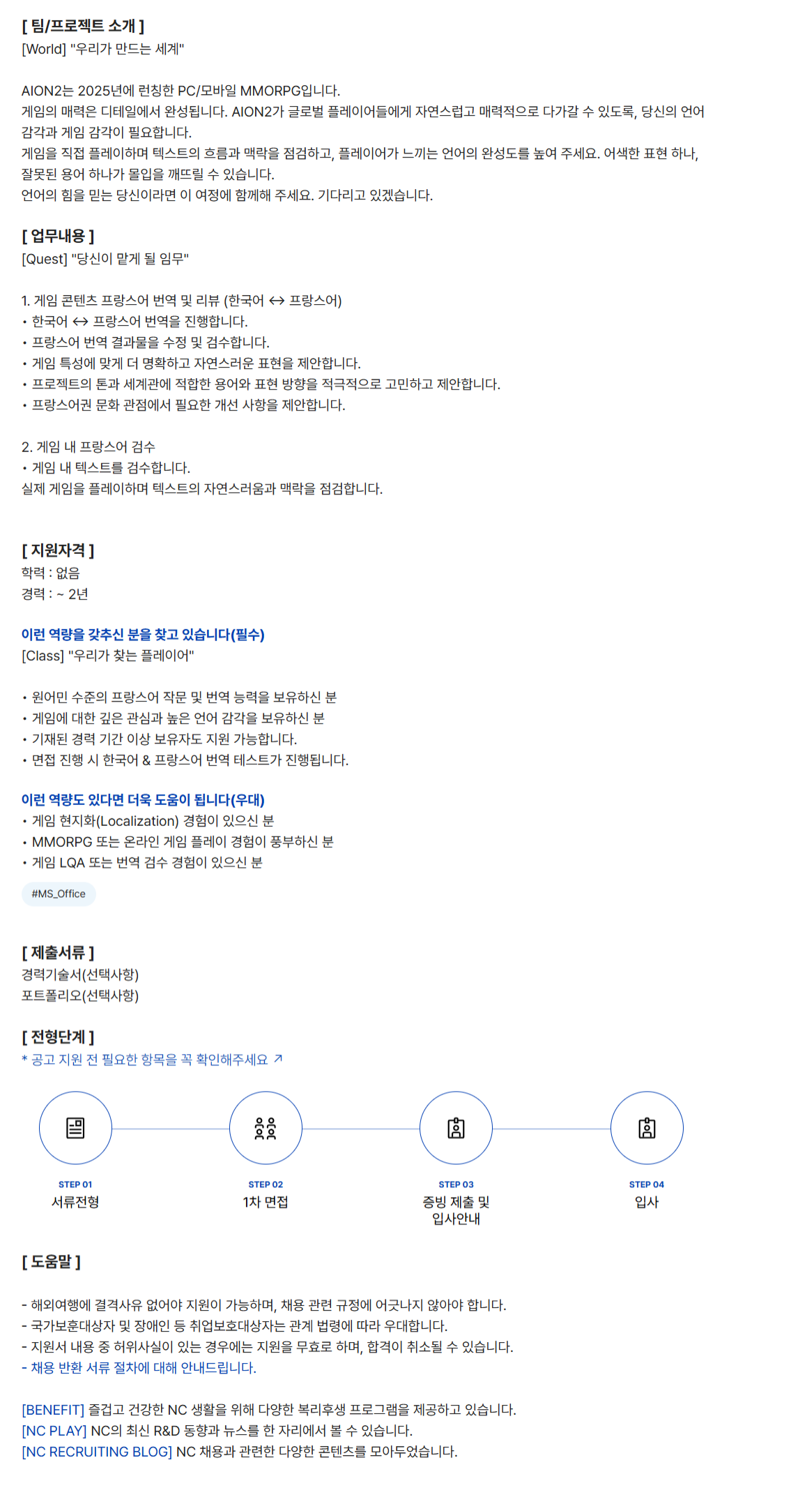 [´Ü±â°è¾àÁ÷][AION2] °ÔÀÓ ÇöÁöÈ ÇÁ¶û½º¾î ¹ø¿ª / °Ë¼ö (Linguiste français(e) & LQA)