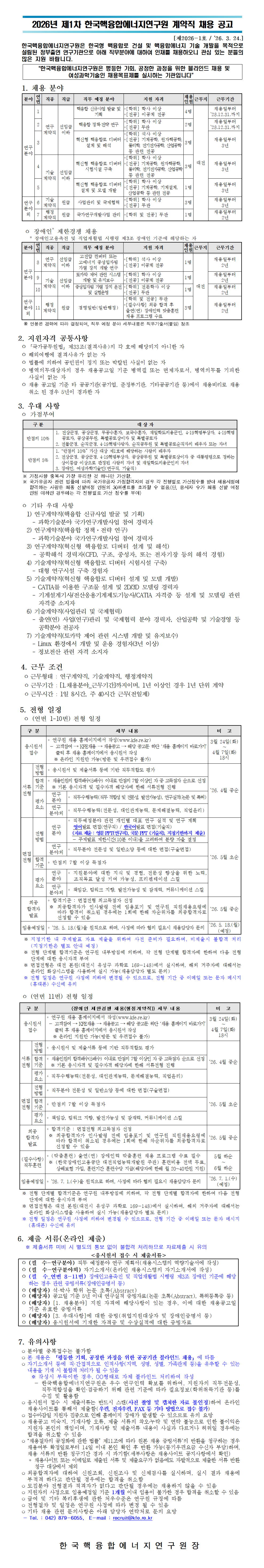 [Á¦2026-1È£] 2026³â Á¦1Â÷ Çѱ¹ÇÙÀ¶ÇÕ¿¡³ÊÁö¿¬±¸¿ø °è¾àÁ÷ ä¿ë °ø°í