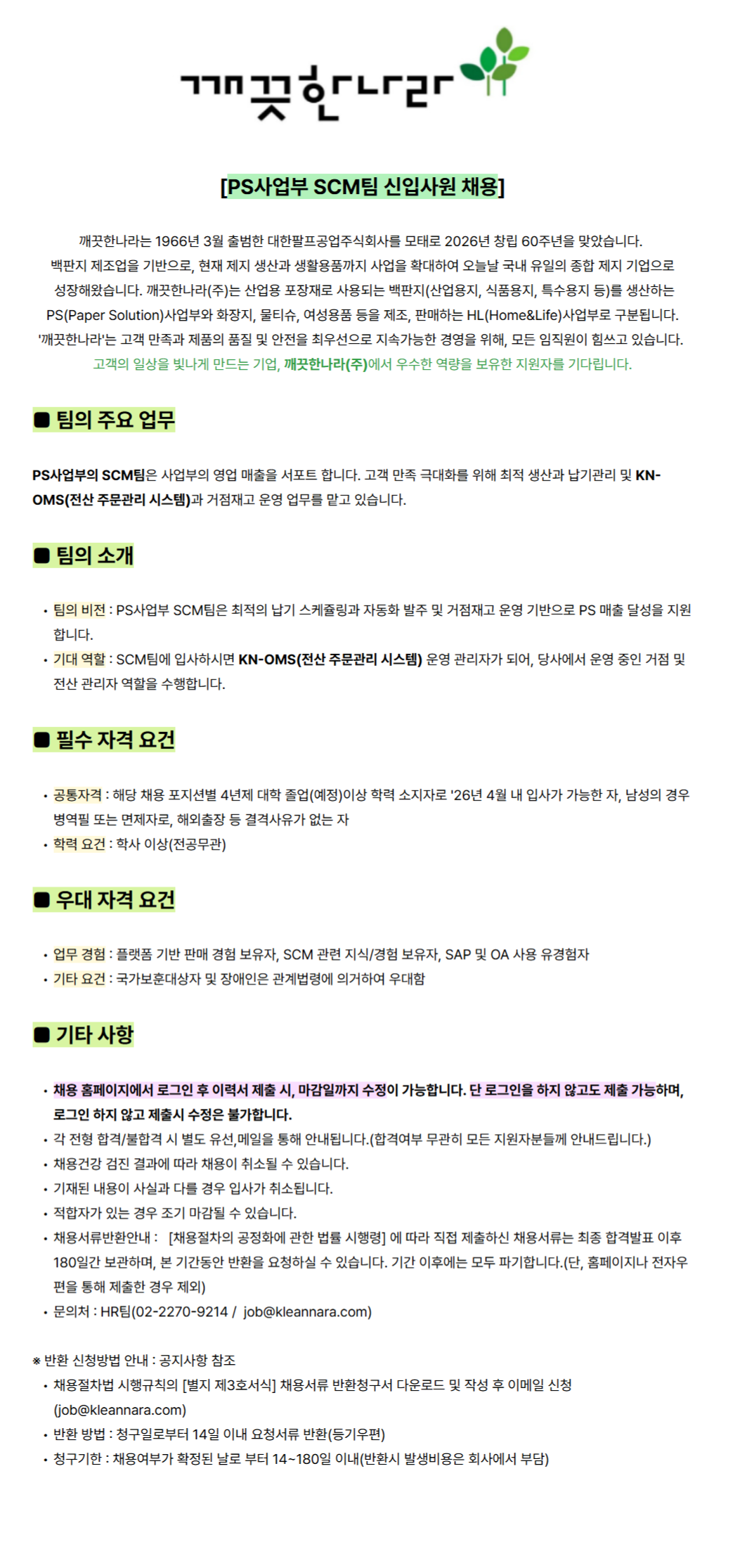 [SCMÆÀ] '26³â 1ºÐ±â PS»ç¾÷ºÎ SCMÆÀ Á¤±ÔÁ÷ »ç¿ø ¸ðÁý(½ÅÀÔ)