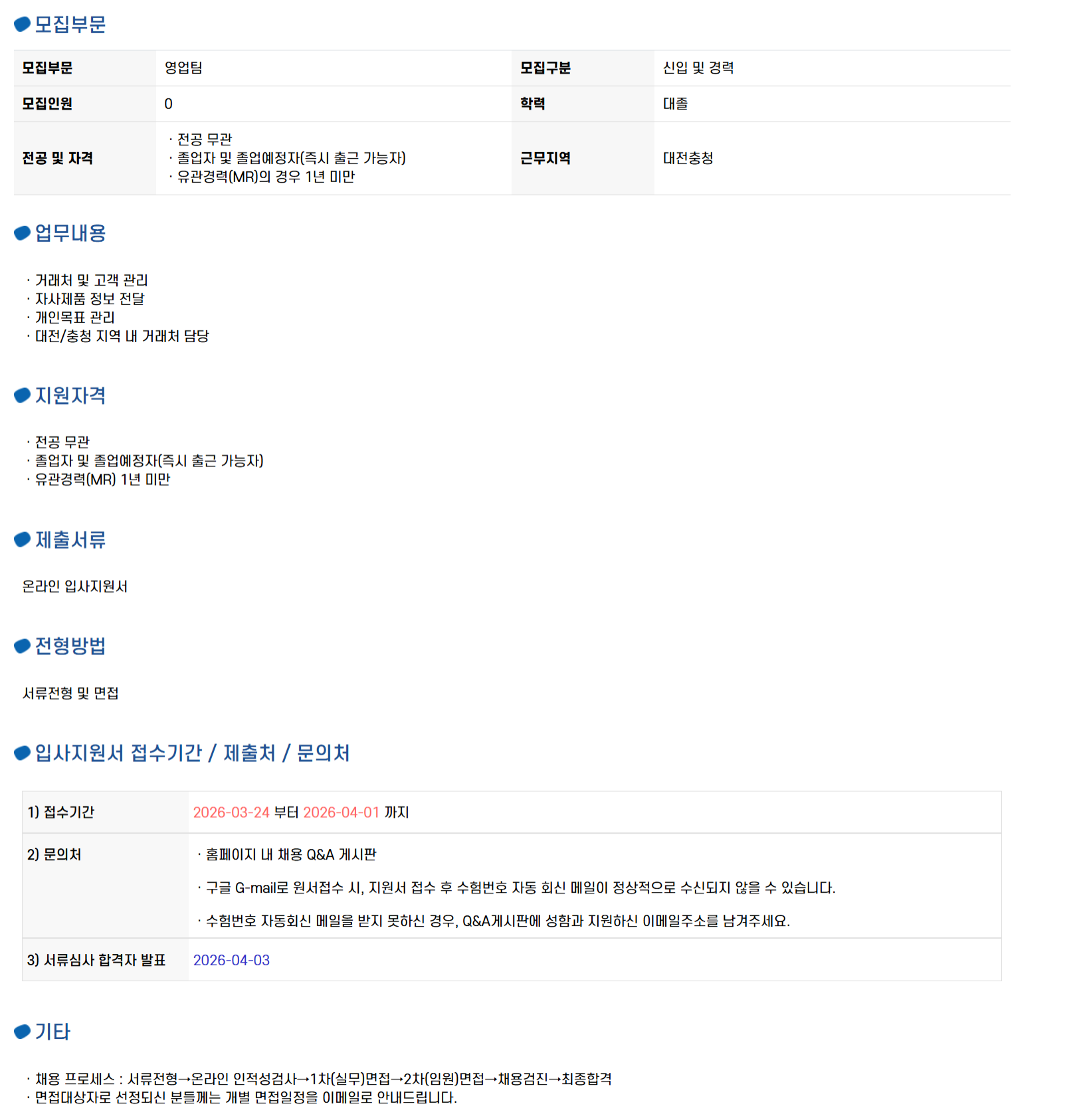 [Á¤±ÔÁ÷/½ÅÀÔ] ´ëÀü/ÃæÃ» º´¿ø¿µ¾÷(MR) ä¿ë