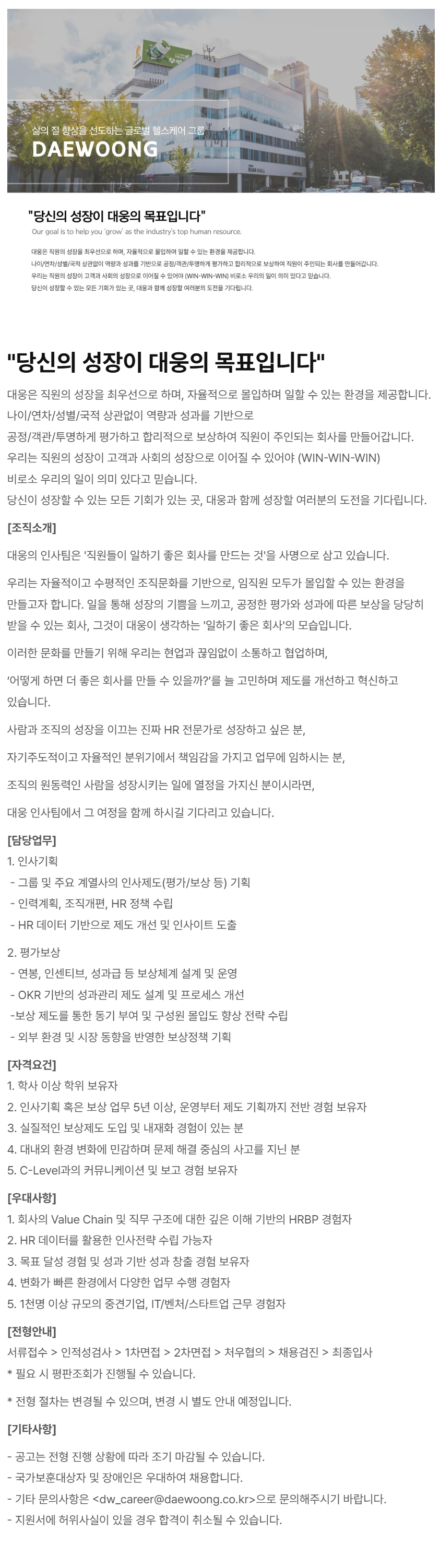 - ±âŸ ¹®ÀÇ»çÇ×Àº <dw_career@daewoong.co.kr******@*******.***>À¸·Î ¹®ÀÇÇØÁֽñ⠹ٶø´Ï´Ù.