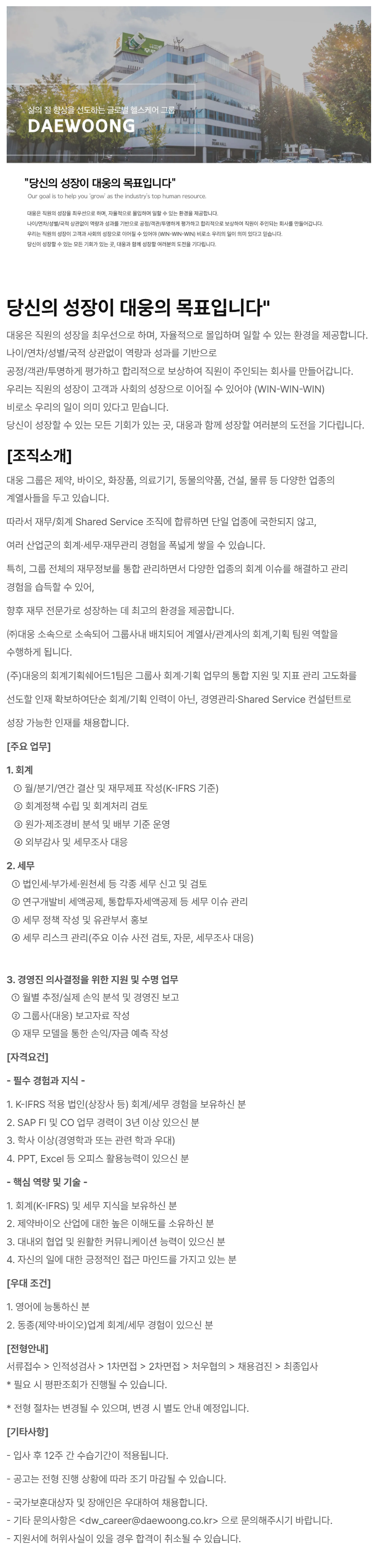 - ±âŸ ¹®ÀÇ»çÇ×Àº <dw_career@daewoong.co.kr******@*******.***> À¸·Î ¹®ÀÇÇØÁֽñ⠹ٶø´Ï´Ù.