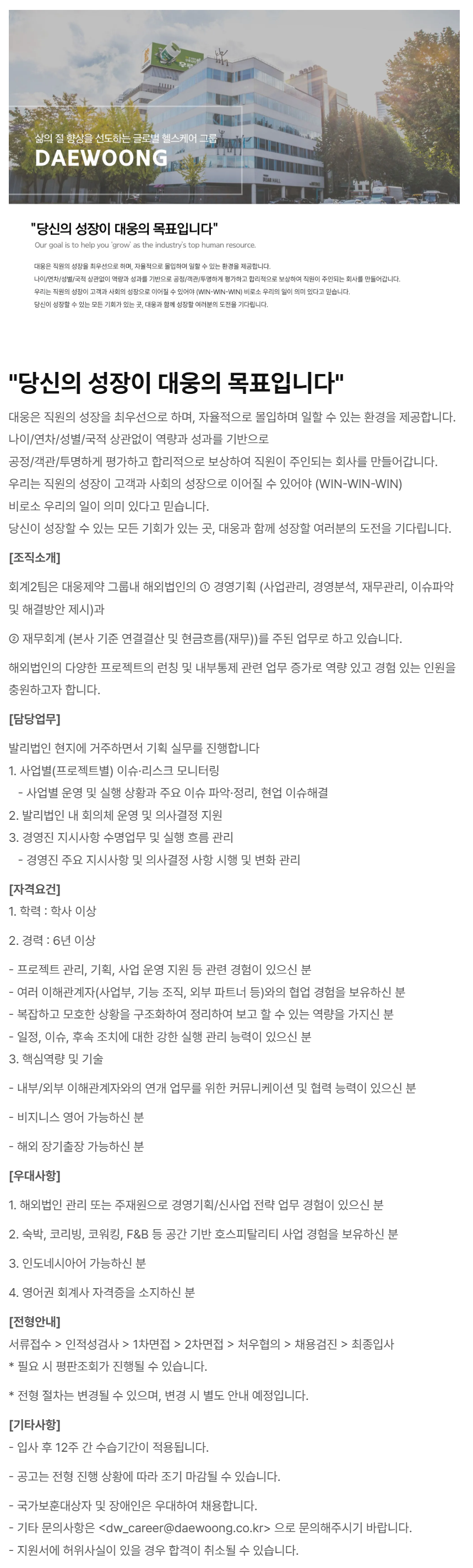 - ±âŸ ¹®ÀÇ»çÇ×Àº <dw_career@daewoong.co.kr******@*******.***> À¸·Î ¹®ÀÇÇØÁֽñ⠹ٶø´Ï´Ù.
