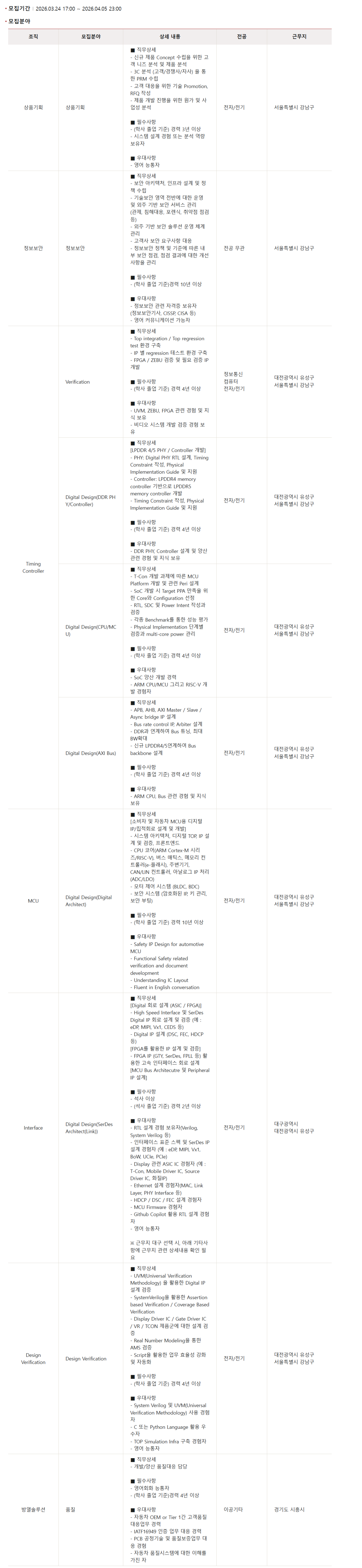 - ÀÎÅÍÆäÀ̽º Ç¥ÁØ ½ºÆå ¹× SerDes IP ¼³°è °æÇèÀÚ (¿¹ : eDP, MIPI, Vx1, BoW, UCIe, PCIe)