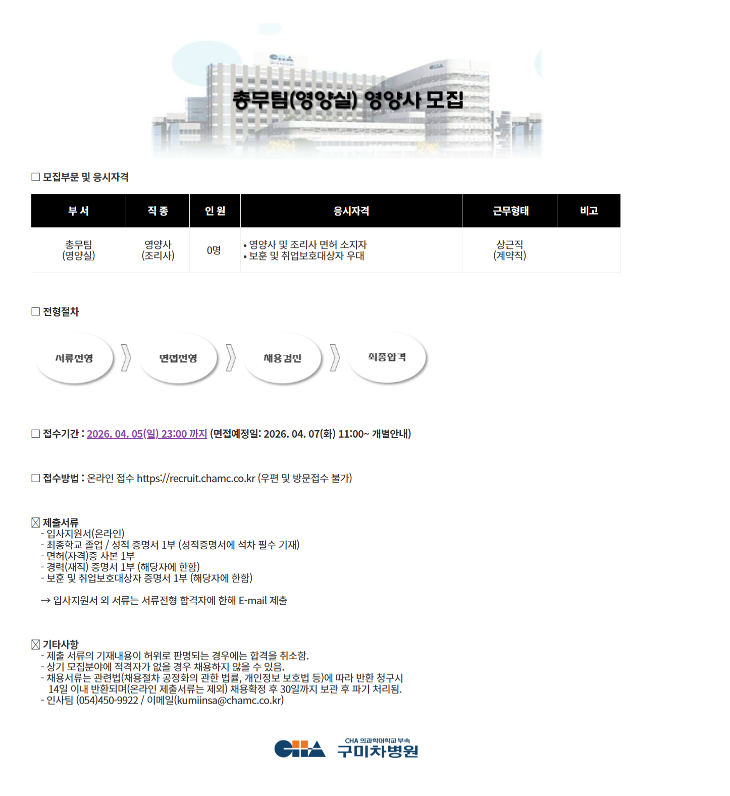 ºÎ ¼ Á÷ Á¾ ÀÎ ¿ø ÀÀ½ÃÀÚ°Ý ±Ù¹«ÇüÅ ºñ°í Ãѹ«ÆÀ (¿µ¾ç½Ç) ¿µ¾ç»ç (Á¶¸®»ç) 0¸í • ¿µ¾ç»ç ¹× Á¶¸®»ç ¸éÇã ¼ÒÁöÀÚ • º¸ÈÆ ¹× Ãë¾÷º¸È£´ë»óÀÚ ¿ì´ë »ó±ÙÁ÷ (°è¾àÁ÷)