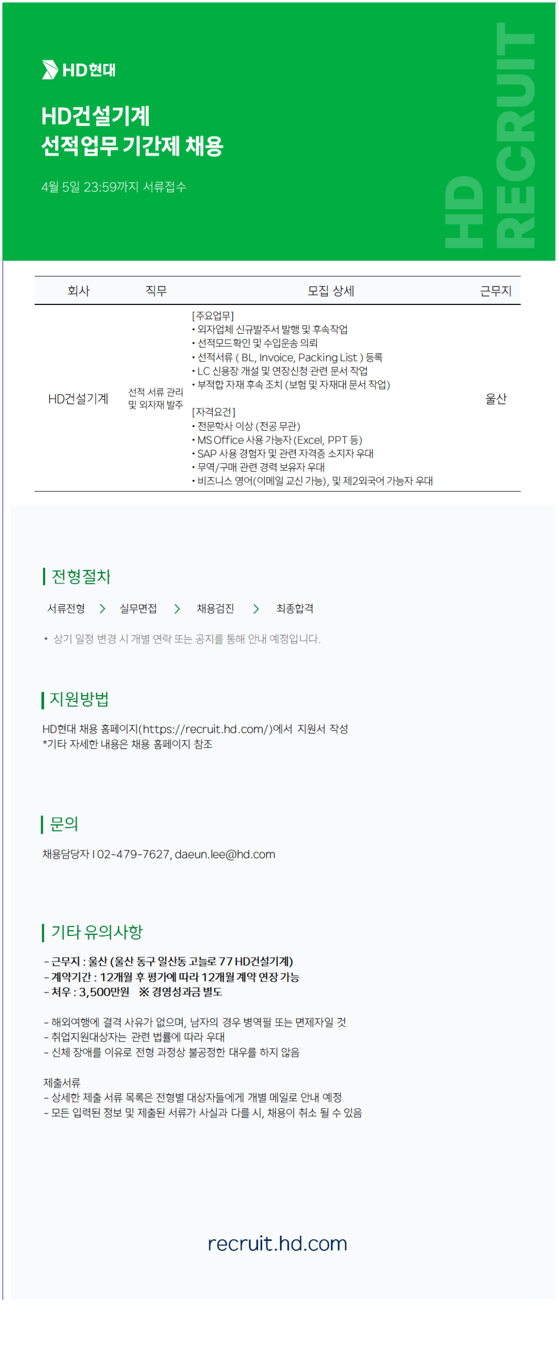 [HD°Ç¼³±â°è] ¼±Àû¾÷¹«°ü¸® ±â°£Á¦ ä¿ë(¿ï»ê)