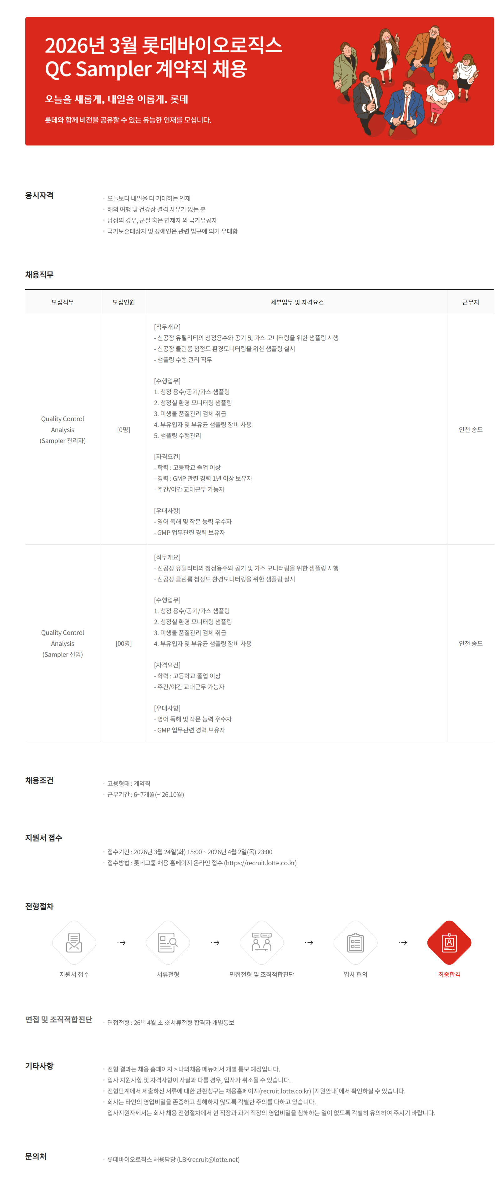 2026³â 3¿ù ·Ôµ¥¹ÙÀÌ¿À·ÎÁ÷½º QC Sampler °è¾àÁ÷ ä¿ë