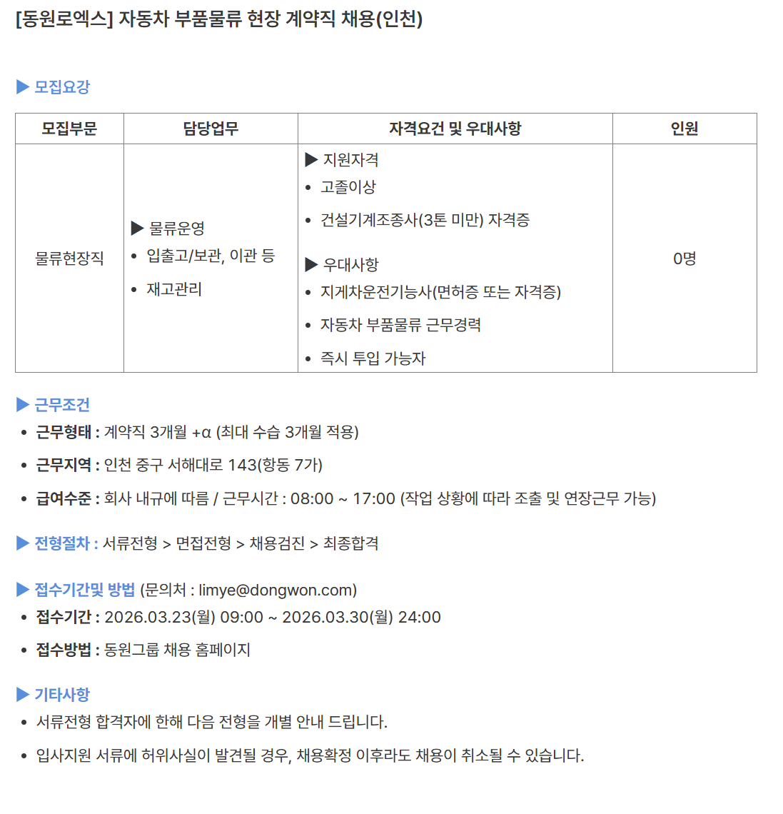 [µ¿¿ø·Î¿¢½º] ÀÚµ¿Â÷ ºÎǰ¹°·ù ÇöÀå °è¾àÁ÷ ä¿ë(ÀÎõ)