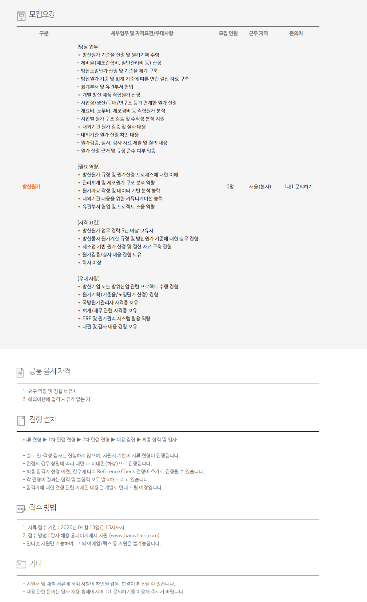 [´ã´ç ¾÷¹«] • ¹æ»ê¿ø°¡ ±âÁØÀ² »êÁ¤ ¹× ¿ø°¡±âȹ ¼öÇà - Á¦ºñÀ²(Á¦Á¶°£Á¢ºñ, ÀϹݰü¸®ºñ µî) »êÁ¤ - ¹æ»ê³ëÀӴܰ¡ »êÁ¤ ¹× ±âÁØÀ² ü°è ±¸Ãà - ¹æ»ê¿ø°¡ ±âÁØ ¹× ȸ°è ±âÁØ¿¡ µû¸¥ ¿¬°£ °á»ê ÀÚ·á ±¸Ãà - ȸ°èºÎ¼­ ¹× À¯°üºÎ¼­ Çù¾÷ • °³º° ¹æ»ê Á¦Ç° Á÷Á¢¿ø°¡ »êÁ¤ - »ç¾÷Àå/»ý»ê/±¸¸Å/¿¬±¸¼Ò µî°ú ¿¬°èÇÑ ¿ø°¡ »êÁ¤ - Àç·áºñ, ³ë¹«ºñ, Á¦Á¶°æºñ µî Á÷Á¢¿ø°¡ ºÐ¼® - »ç¾÷º° ¿ø°¡ ±¸Á¶ °ËÅä ¹× ¼öÀͼº ºÐ¼® Áö¿ø • ´ë¿Ü±â°ü ¿ø°¡ °ËÁõ ¹× ½Ç»ç ´ëÀÀ - ´ë¿Ü±â°ü ¿ø°¡ »êÁ¤ È®ÀÎ ´ëÀÀ - ¿ø°¡°ËÁõ, ½Ç»ç, °¨»ç ÀÚ·á Á¦Ãâ ¹× ÁúÀÇ ´ëÀÀ - ¿ø°¡ »êÁ¤ ±Ù°Å ¹× ±ÔÁ¤ Áؼö ¿©ºÎ ÀÔÁõ [ÇÊ¿ä ¿ª·®] • ¹æ»ê¿ø°¡ ±ÔÁ¤ ¹× ¿ø°¡»êÁ¤ ÇÁ·Î¼¼½º¿¡ ´ëÇÑ ÀÌÇØ • °ü¸®È¸°è ¹× Á¦Á¶¿ø°¡ ±¸Á¶ ºÐ¼® ¿ª·® • ¿ø°¡ÀÚ·á ÀÛ¼º ¹× µ¥ÀÌÅÍ ±â¹Ý ºÐ¼® ´É·Â • ´ë¿Ü±â°ü ´ëÀÀÀ» À§ÇÑ Ä¿¹Â´ÏÄÉÀÌ¼Ç ´É·Â • À¯°üºÎ¼­ Çù¾÷ ¹× ÇÁ·ÎÁ§Æ® Á¶À² ¿ª·® [ÀÚ°Ý ¿ä°Ç] • ¹æ»ê¿ø°¡ ¾÷¹« °æ·Â 5³â ÀÌ»ó º¸À¯ÀÚ • ¹æ»ê¹°ÀÚ ¿ø°¡°è»ê ±ÔÁ¤ ¹× ¹æ»ê¿ø°¡ ±âÁØ¿¡ ´ëÇÑ ½Ç¹« °æÇè • Á¦Á¶¾÷ ±â¹Ý ¿ø°¡ »êÁ¤ ¹× °á»ê ÀÚ·á ±¸Ãà °æÇè • ¿ø°¡°ËÁõ/½Ç»ç ´ëÀÀ °æÇè º¸À¯ • Çлç ÀÌ»ó [¿ì´ë »çÇ×] • ¹æ»ê±â¾÷ ¶Ç´Â ¹æÀ§»ê¾÷ °ü·Ã ÇÁ·ÎÁ§Æ® ¼öÇà °æÇè • ¿ø°¡±âȹ(±âÁØÀ²/³ëÀӴܰ¡ »êÁ¤) °æÇè • ±¹¹æ¿ø°¡°ü¸®»ç ÀÚ°ÝÁõ º¸À¯ • ȸ°è/À繫 °ü·Ã ÀÚ°ÝÁõ º¸À¯ • ERP ¹× ¿ø°¡°ü¸® ½Ã½ºÅÛ È°¿ë ¿ª·® • ´ë°ü ¹× °¨»ç ´ëÀÀ °æÇè º¸À¯ 0¸í ¼­¿ï(º»»ç) 1´ë1 ¹®ÀÇÇϱâ