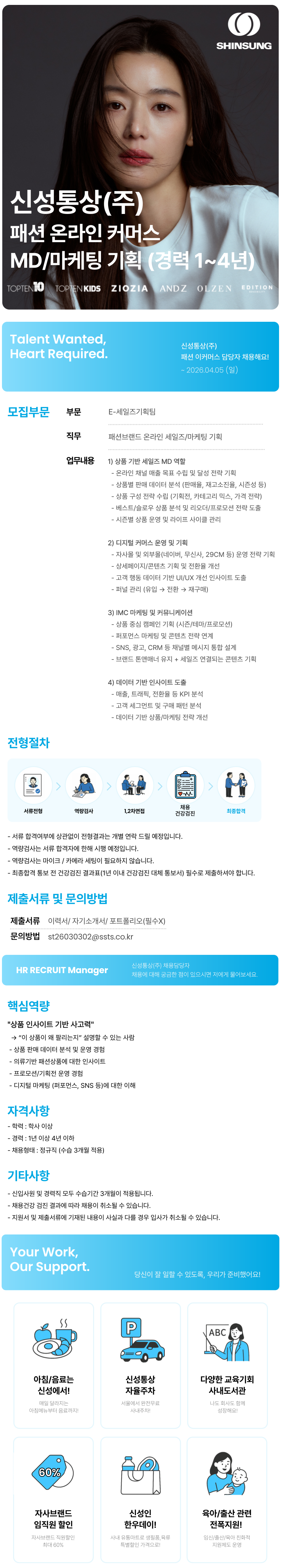 ½Å¼ºÅë»ó(ÁÖ) E-¼¼ÀÏÁî±âȹÆÀ ÆÐ¼Ç ¿Â¶óÀÎ Ä¿¸Ó½º MD/¸¶ÄÉÆÃ ±âȹ ä¿ë (°æ·Â 1~4³â)