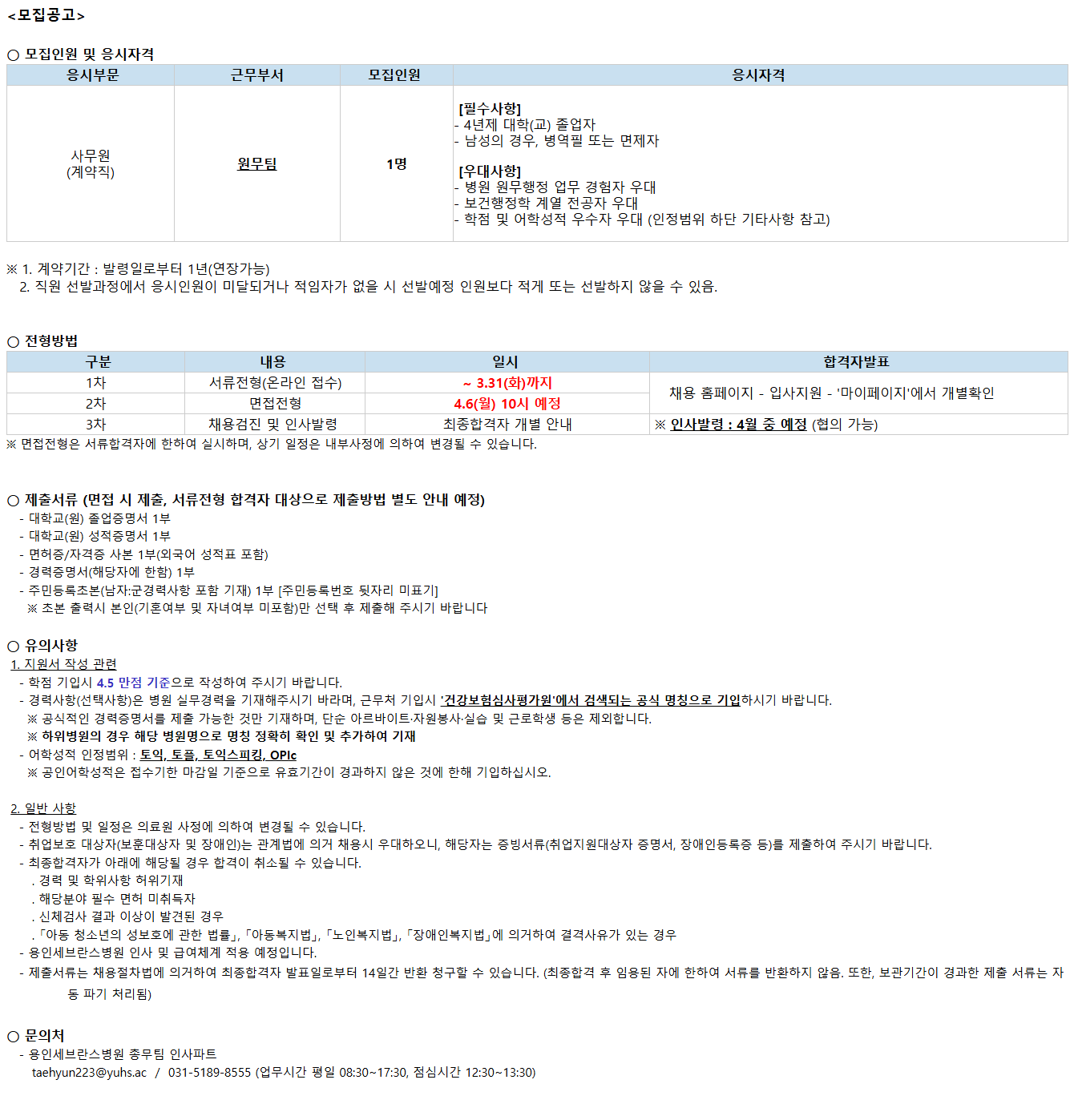 - ¿ëÀμ¼ºê¶õ½ºº´¿ø ÀÎ»ç ¹× ±Þ¿©Ã¼°è Àû¿ë ¿¹Á¤ÀÔ´Ï´Ù.