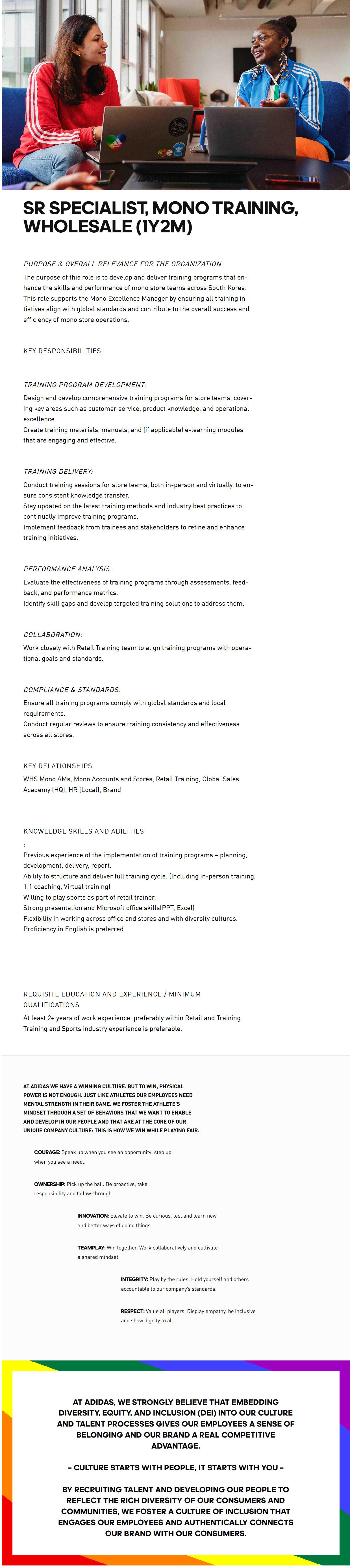 The purpose of this role is to develop and deliver training programs that enhance the skills and performance of mono store teams across South Korea. This role supports the Mono Excellence Manager by ensuring all training initiatives align with global standards and contribute to the overall success and efficiency of mono store operations.