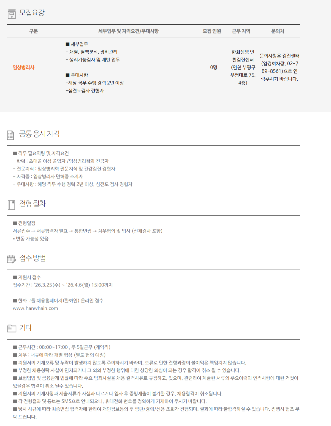 [ÇÑÈ»ý¸í]ÀÎõ°ËÁø¼¾ÅÍ Àǹ«Á÷(ÀÓ»óº´¸®»ç) ä¿ë