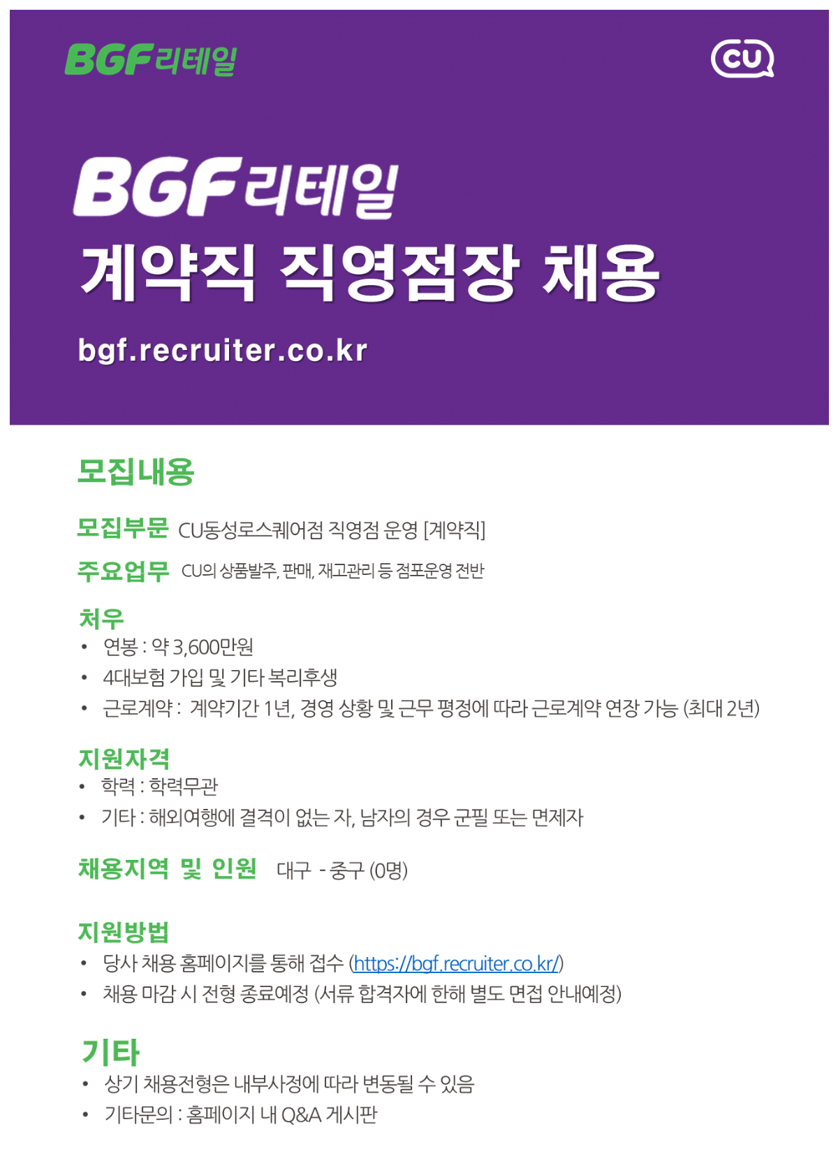 [BGF¸®Å×ÀÏ] 2026³â °è¾àÁ÷ Á÷¿µÁ¡Àå ä¿ë - µ¿¼º·Î½ºÄù¾îÁ¡