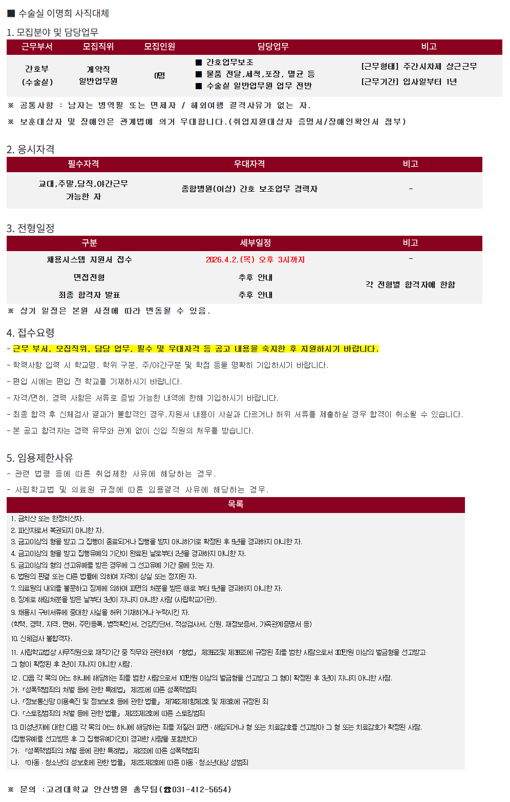 [¾È»êº´¿ø26-20] °£È£ºÎ ¼ö¼ú½Ç °è¾àÁ÷ÀϹݾ÷¹«¿ø ¸ðÁý