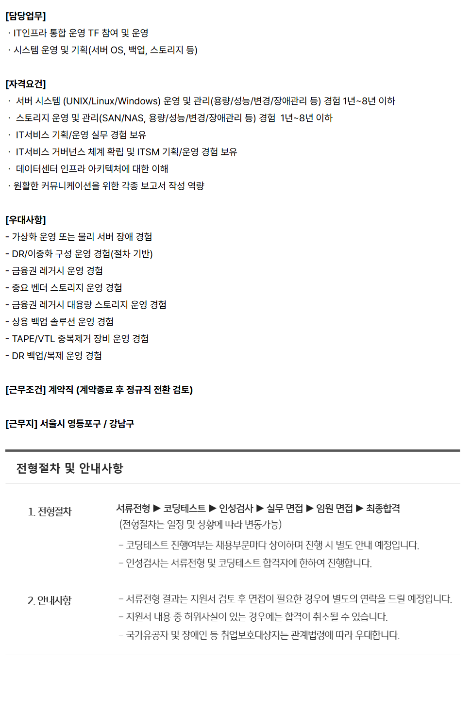 ¤ý ¼¹ö ½Ã½ºÅÛ (UNIX/Linux/Windows) ¿î¿µ ¹× °ü¸®(¿ë·®/¼º´É/º¯°æ/Àå¾Ö°ü¸® µî) °æÇè 1³â~8³â ÀÌÇÏ