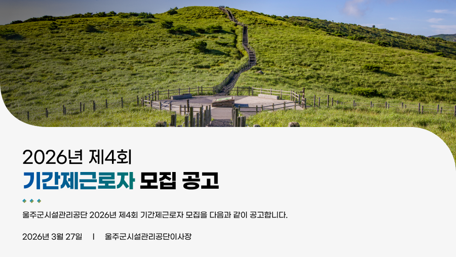 ¿ïÁÖ±º½Ã¼³°ü¸®°ø´Ü 2026³â Á¦4ȸ ±â°£Á¦±Ù·ÎÀÚ ¸ðÁýÀ» ´ÙÀ½°ú °°ÀÌ °ø°íÇÕ´Ï´Ù.