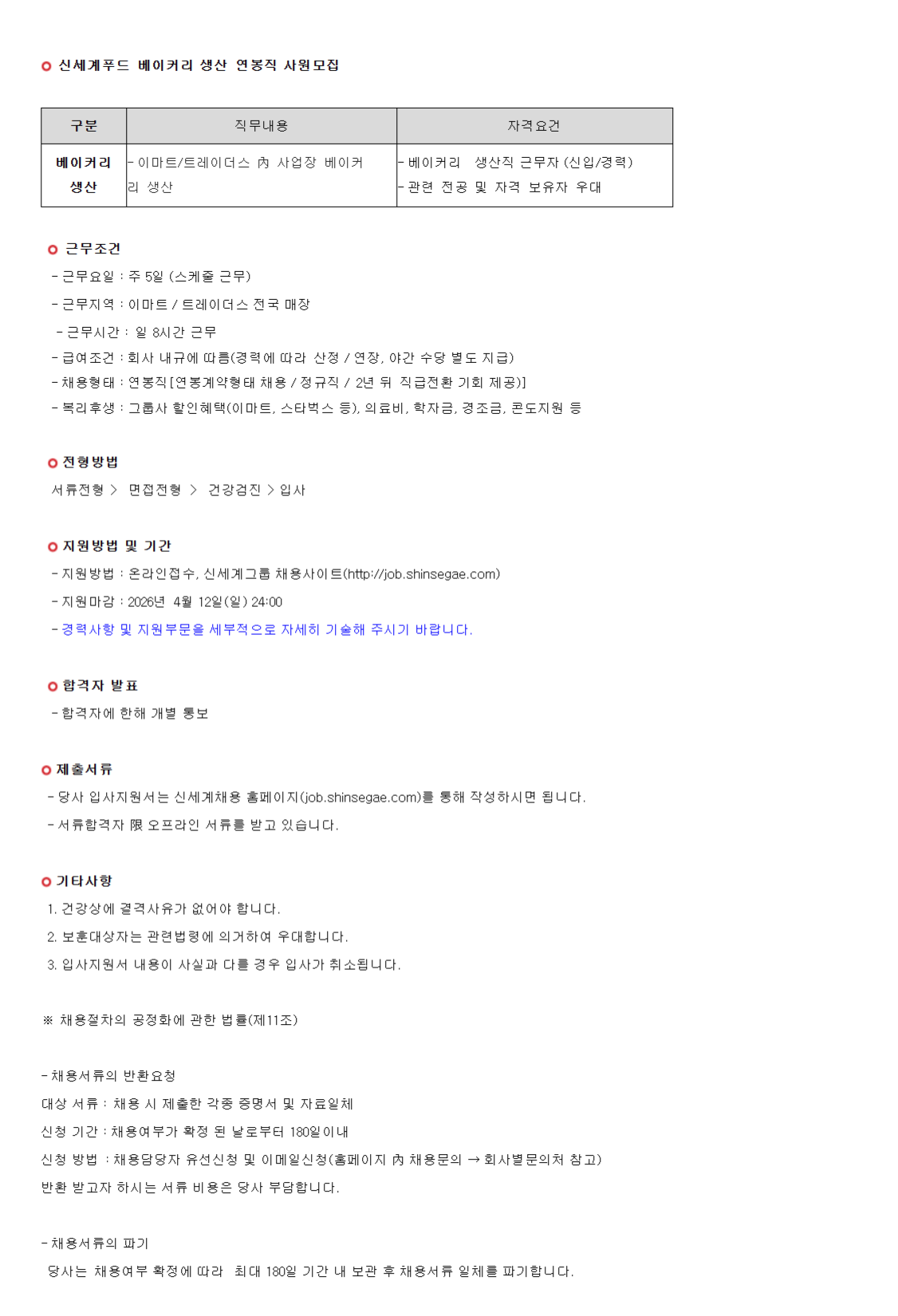 (ÁÖ)½Å¼¼°èǪµå º£ÀÌÄ¿¸® »ý»ê ¿¬ºÀÁ÷ »ç¿ø¸ðÁý
