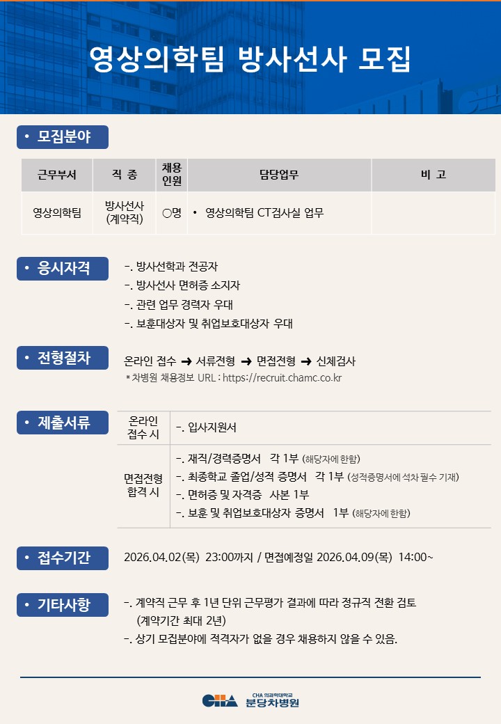 [ºÐ´çÂ÷º´¿ø] ¿µ»óÀÇÇÐÆÀ ¹æ»ç¼±»ç ¸ðÁý
