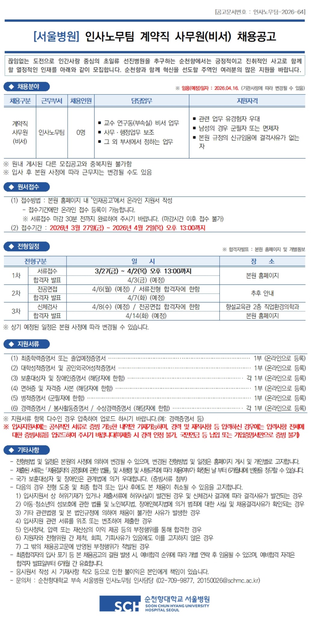 Àλç³ë¹«ÆÀ °è¾àÁ÷ »ç¹«¿ø(ºñ¼­) ä¿ë°ø°í