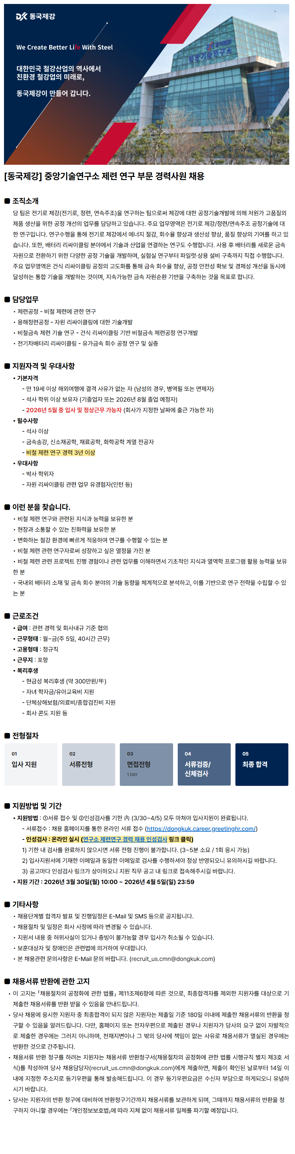 ´ç ÆÀÀº Àü±â·Î Á¦°(Àü±â·Î, Á¤·Ã, ¿¬¼ÓÁÖÁ¶)À» ¿¬±¸ÇÏ´Â ÆÀÀ¸·Î½á Á¦°¿¡ ´ëÇÑ °øÁ¤±â¼ú°³¹ß¿¡ ÀÇÇØ Àú¿ø°¡ °íǰÁúÀÇ Á¦Ç° »ý»êÀ» À§ÇÑ °øÁ¤ °³¼±ÀÇ ¾÷¹«¸¦ ´ã´çÇϰí ÀÖ½À´Ï´Ù. ÁÖ¿ä ¾÷¹«¿µ¿ªÀº Àü±â·Î Á¦°/Á¤·Ã/¿¬¼ÓÁÖÁ¶ °øÁ¤±â¼ú¿¡ ´ëÇÑ ¿¬±¸ÀÔ´Ï´Ù. ¿¬±¸¼öÇàÀ» ÅëÇØ Àü±â·Î Á¦°¿¡¼ ¿¡³ÊÁö Àý°¨, ȸ¼öÀ² Çâ»ó°ú »ý»ê¼º Çâ»ó, ǰÁú Çâ»óÀÇ ±â¿©¸¦ Çϰí ÀÖ½À´Ï´Ù. ¶ÇÇÑ, ¹èÅ͸® ¸®½ÎÀÌŬ¸µ ºÐ¾ß¿¡¼ ±â¼ú°ú »ê¾÷À» ¿¬°áÇÏ´Â ¿¬±¸µµ ¼öÇàÇÕ´Ï´Ù. »ç¿ë ÈÄ ¹èÅ͸®¸¦ »õ·Î¿î ±Ý¼Ó ÀÚ¿øÀ¸·Î ÀüȯÇϱâ À§ÇÑ ´Ù¾çÇÑ °øÁ¤ ±â¼úÀ» °³¹ßÇϸç, ½ÇÇè½Ç ¿¬±¸ºÎÅÍ ÆÄÀÏ·µ¡¤»ó¿ë ¼³ºñ ±¸Ãà±îÁö Á÷Á¢ ¼öÇàÇÕ´Ï´Ù. ÁÖ¿ä ¾÷¹«¿µ¿ªÀº °Ç½Ä ¸®½ÎÀÌŬ¸µ °øÁ¤ÀÇ °íµµÈ¸¦ ÅëÇØ ±Ý¼Ó ȸ¼öÀ² Çâ»ó, °øÁ¤ ¾ÈÀü¼º È®º¸ ¹× °æÁ¦¼º °³¼±À» µ¿½Ã¿¡ ´Þ¼ºÇÏ´Â ÅëÇÕ ±â¼úÀ» °³¹ßÇÏ´Â °ÍÀ̸ç, Áö¼Ó°¡´ÉÇÑ ±Ý¼Ó ÀÚ¿ø¼øÈ¯ ±â¹ÝÀ» ±¸ÃàÇÏ´Â °ÍÀ» ¸ñÇ¥·Î ÇÕ´Ï´Ù.
