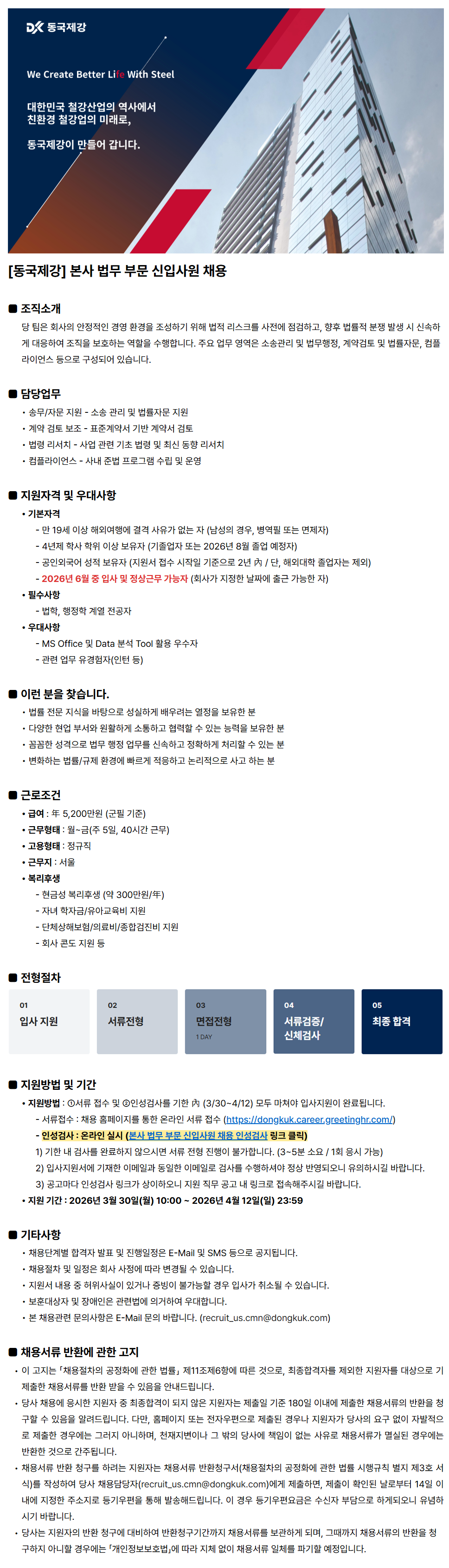 [µ¿±¹Á¦°] º»»ç ¹ý¹« ºÎ¹® ½ÅÀÔ»ç¿ø ä¿ë