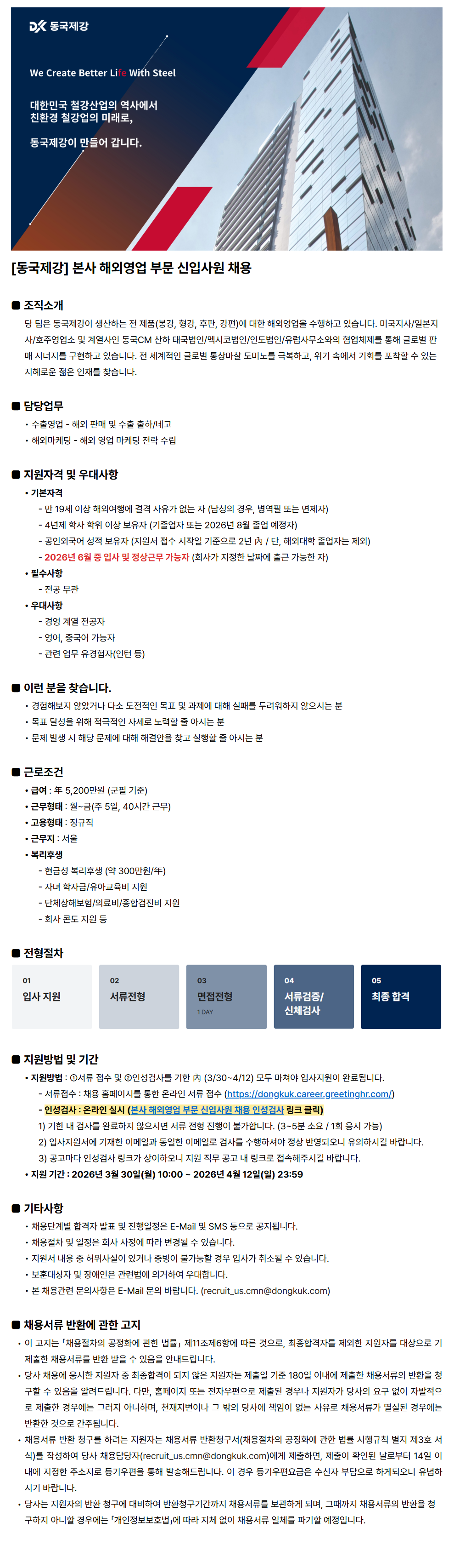 [µ¿±¹Á¦°] º»»ç ÇØ¿Ü¿µ¾÷ ºÎ¹® ½ÅÀÔ»ç¿ø ä¿ë