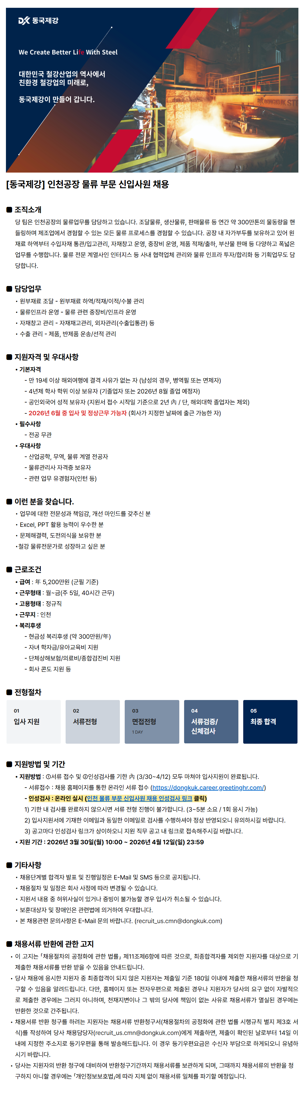 [µ¿±¹Á¦°] ÀÎõ°øÀå ¹°·ù ºÎ¹® ½ÅÀÔ»ç¿ø ä¿ë